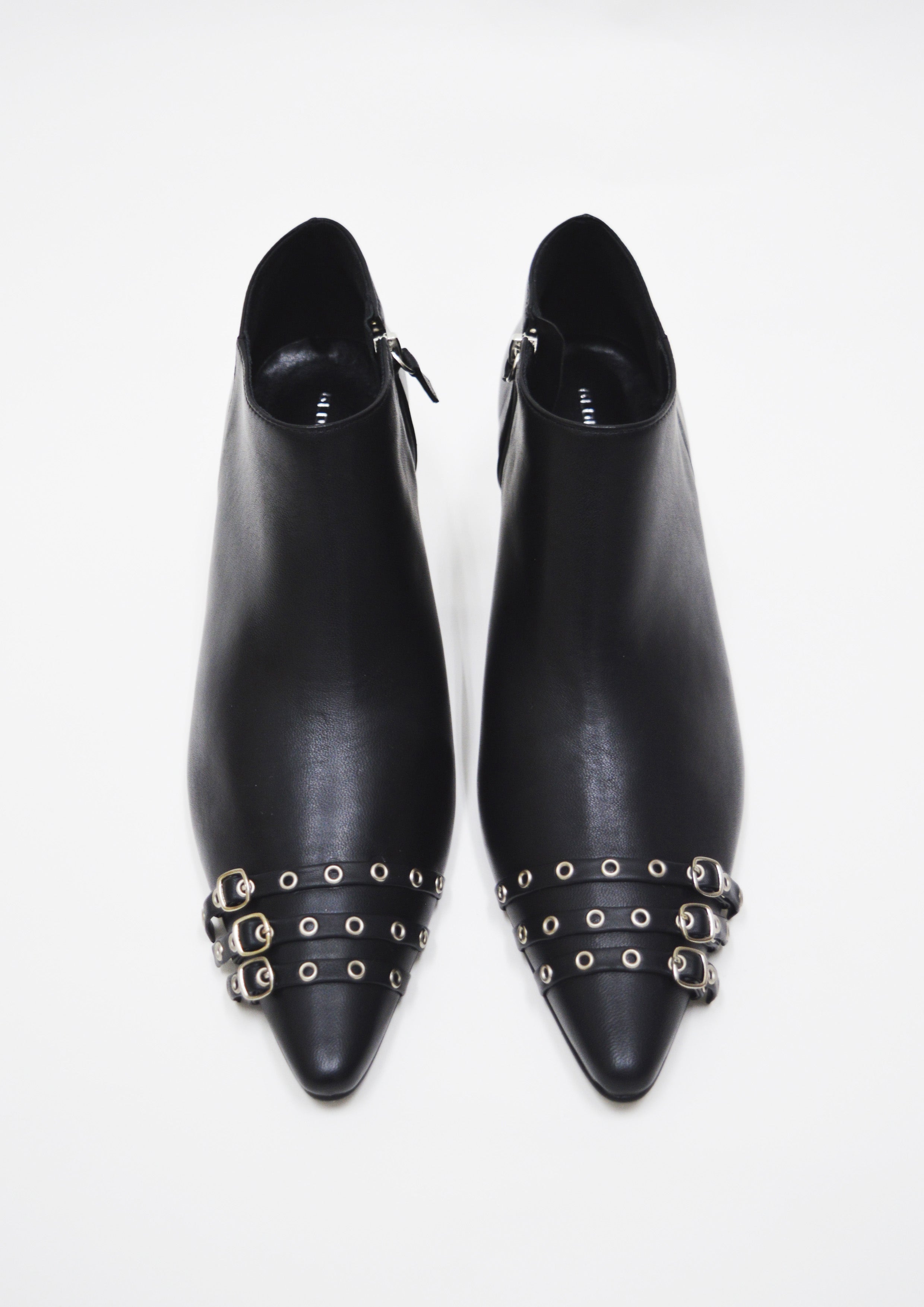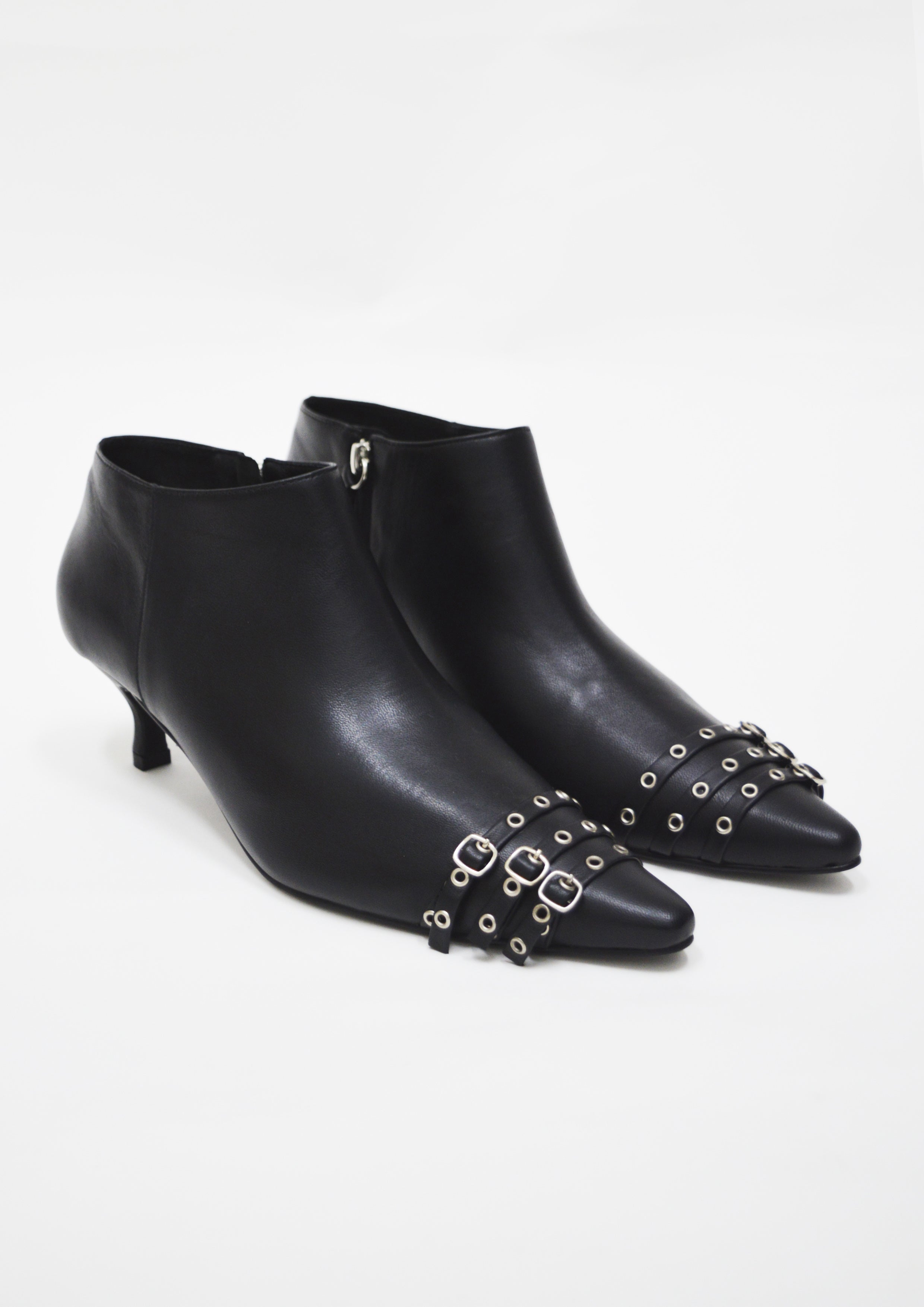 Com seu design contemporâneo, a Ankle Bota com Fivelas em Couro apresenta detalhes metálicos de fivelas que proporcionam um visual moderno e sofisticado. O cano baixo é uma característica essencial desse modelo, tornando-o perfeito para diversas ocasiões.