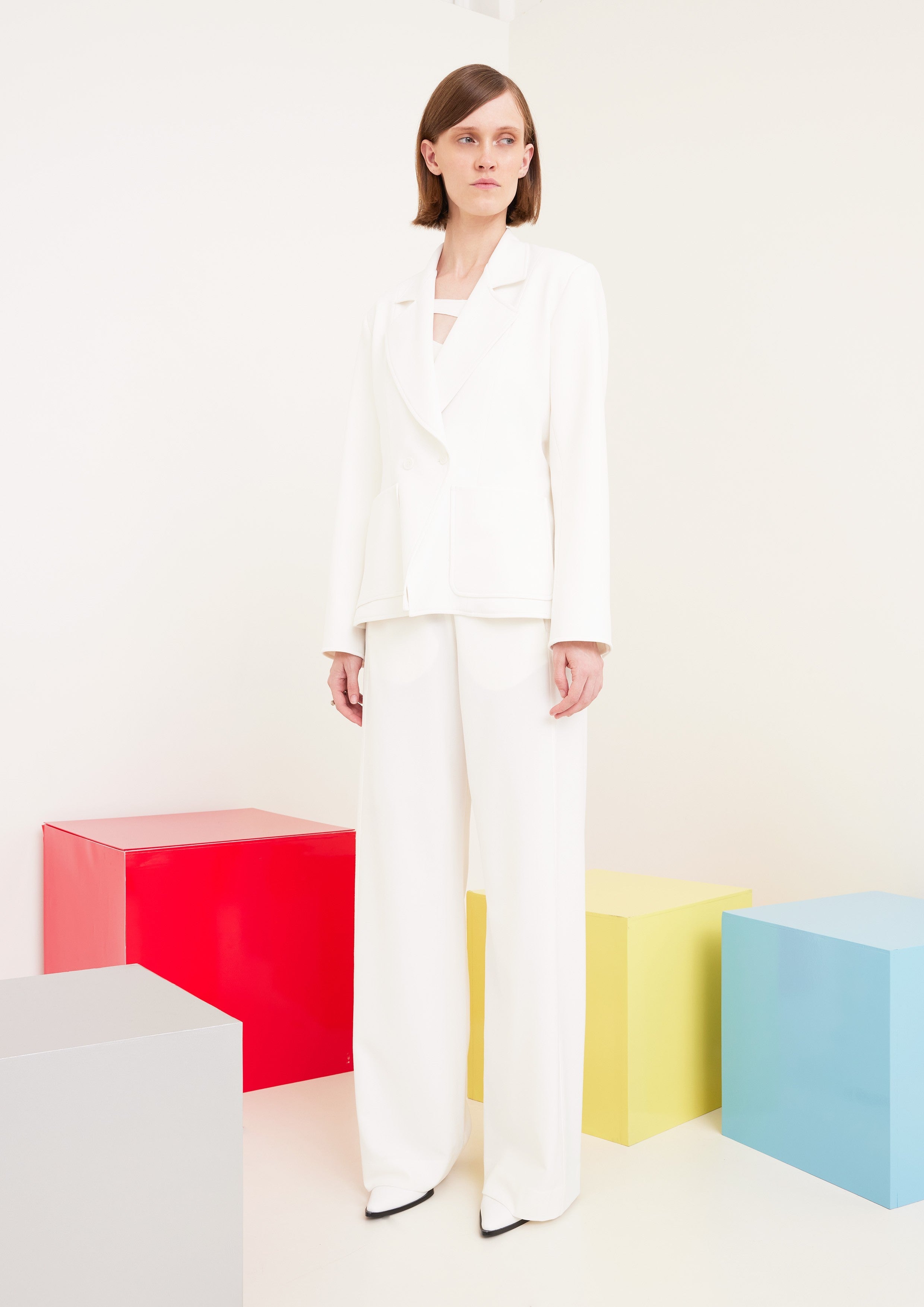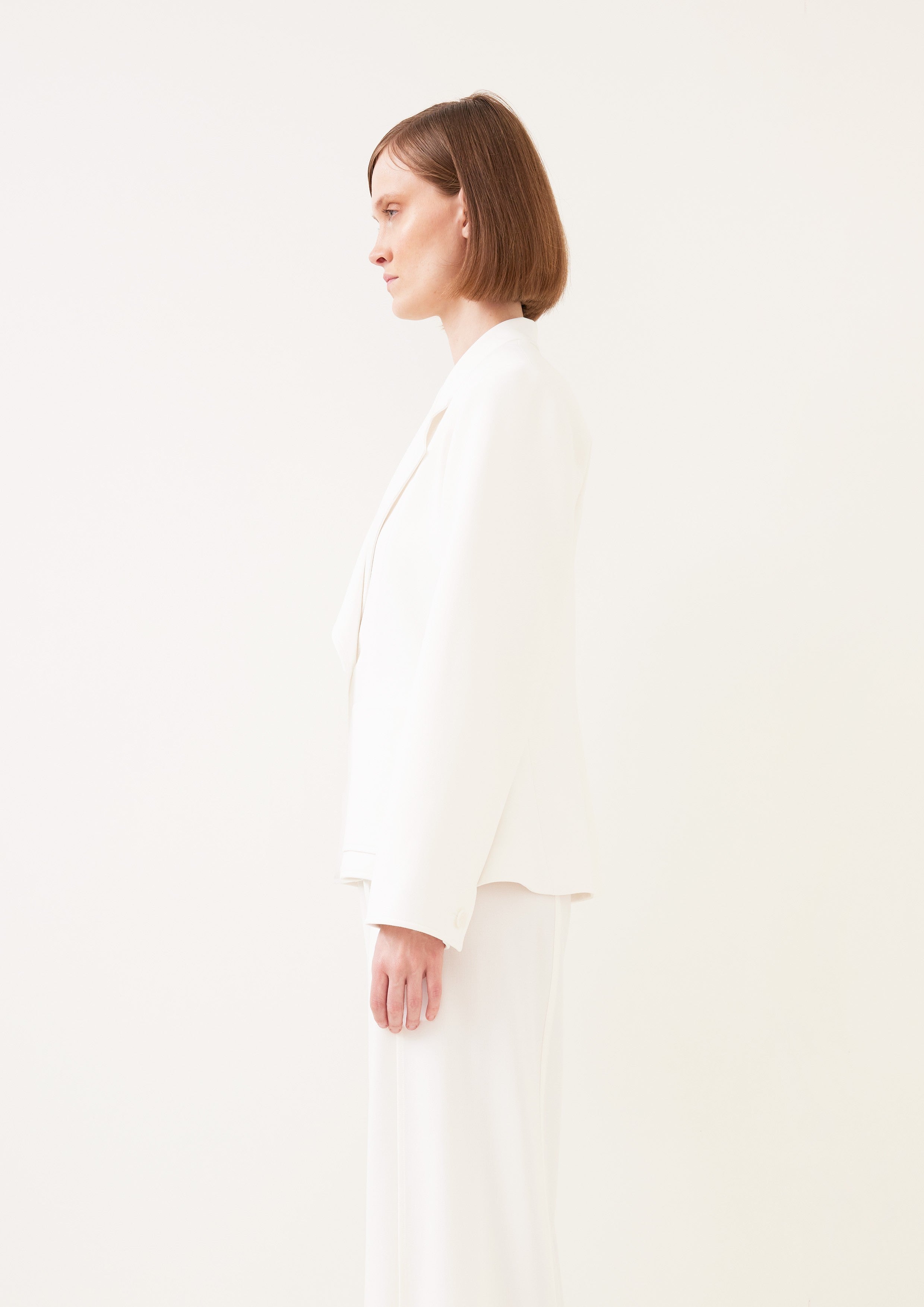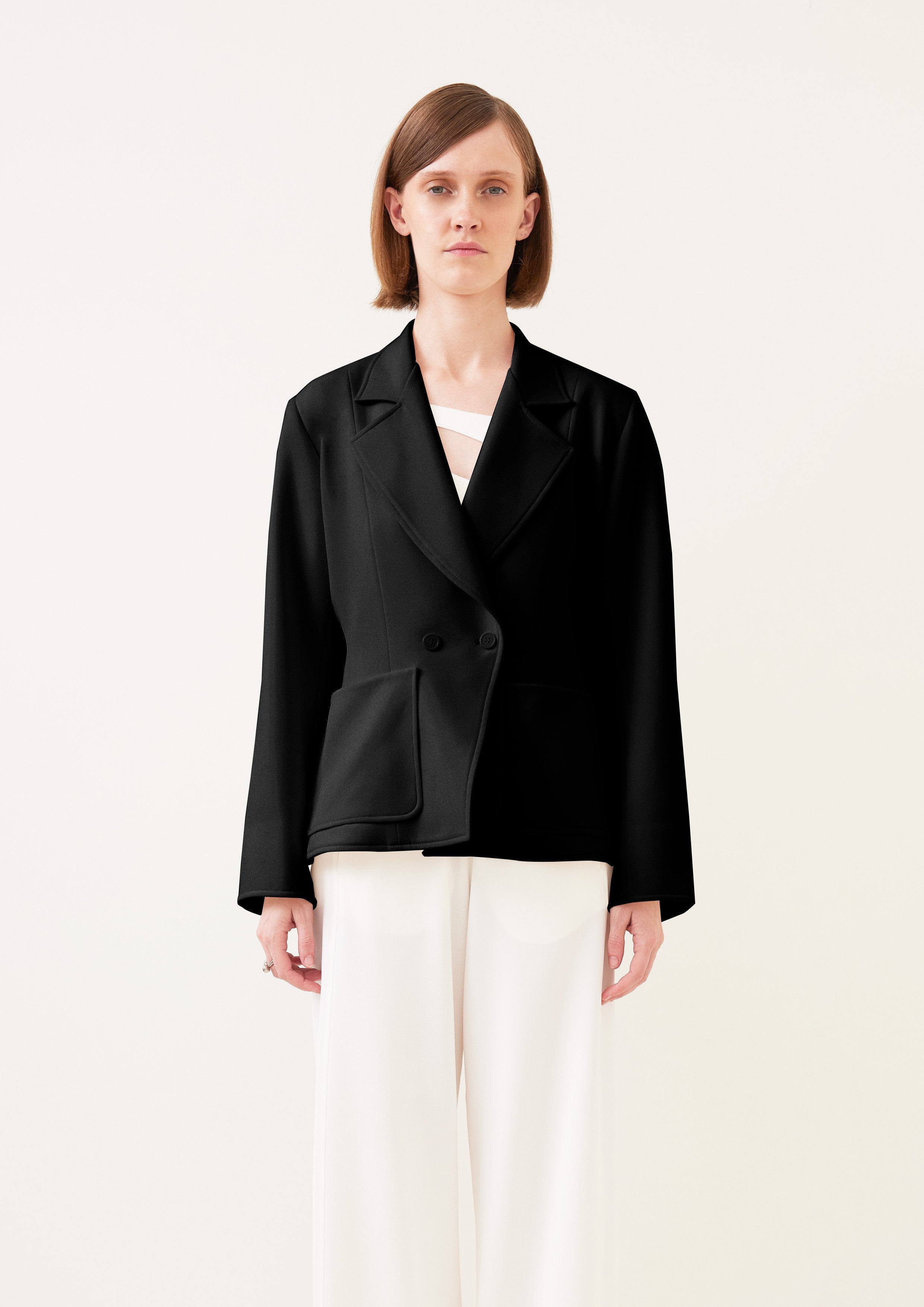 Blazer feito em gabardine, com bolsos funcionais frontais.