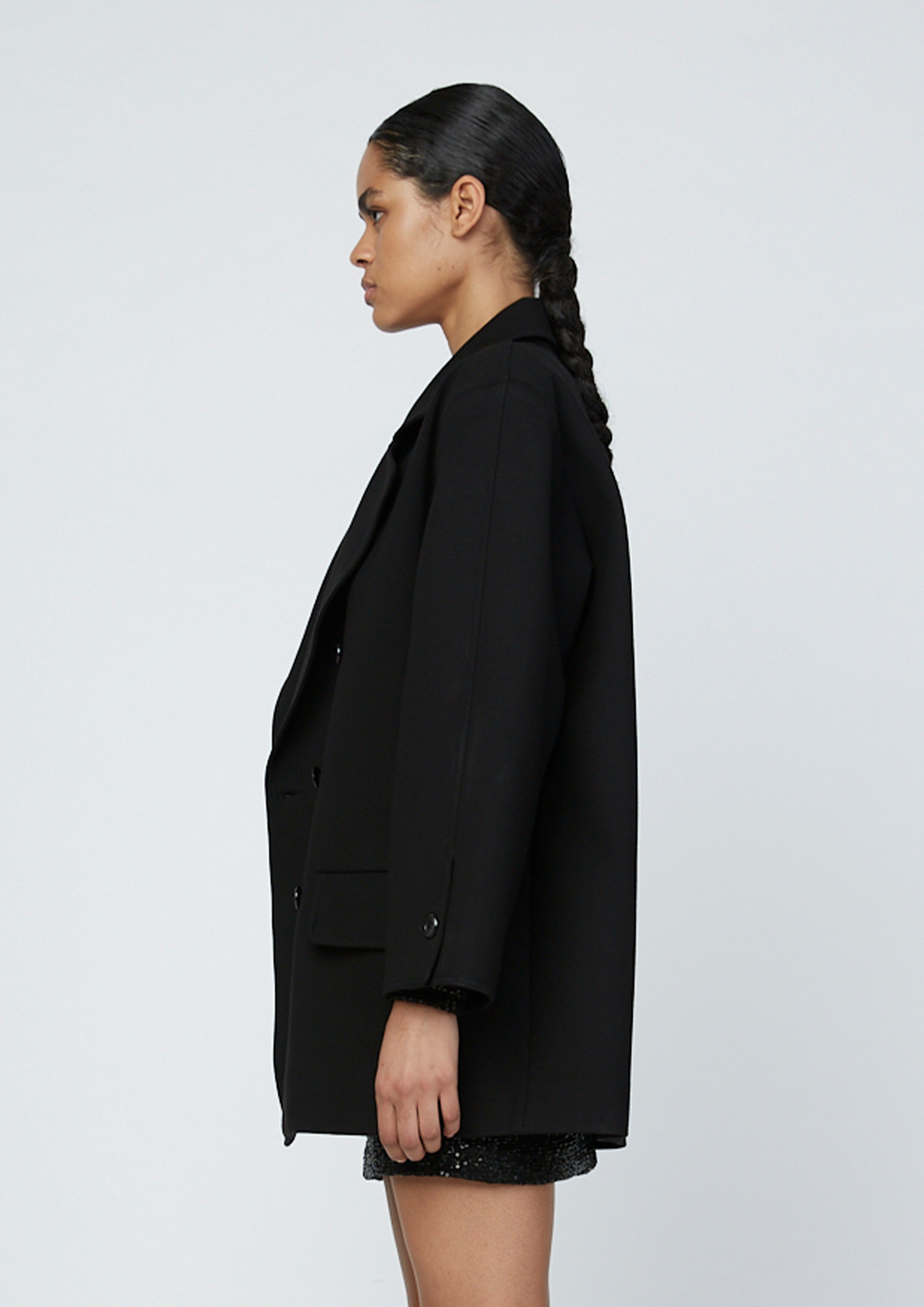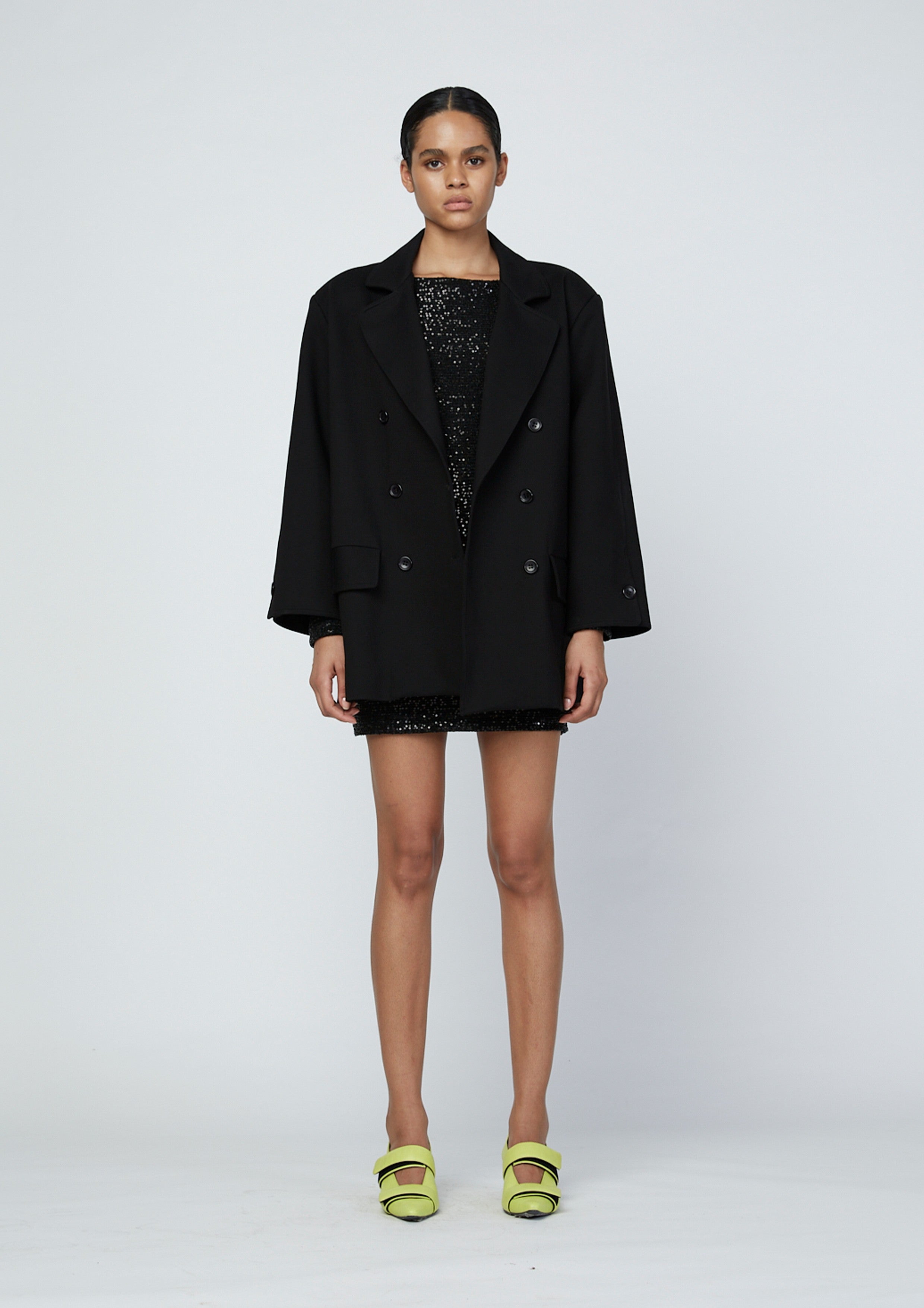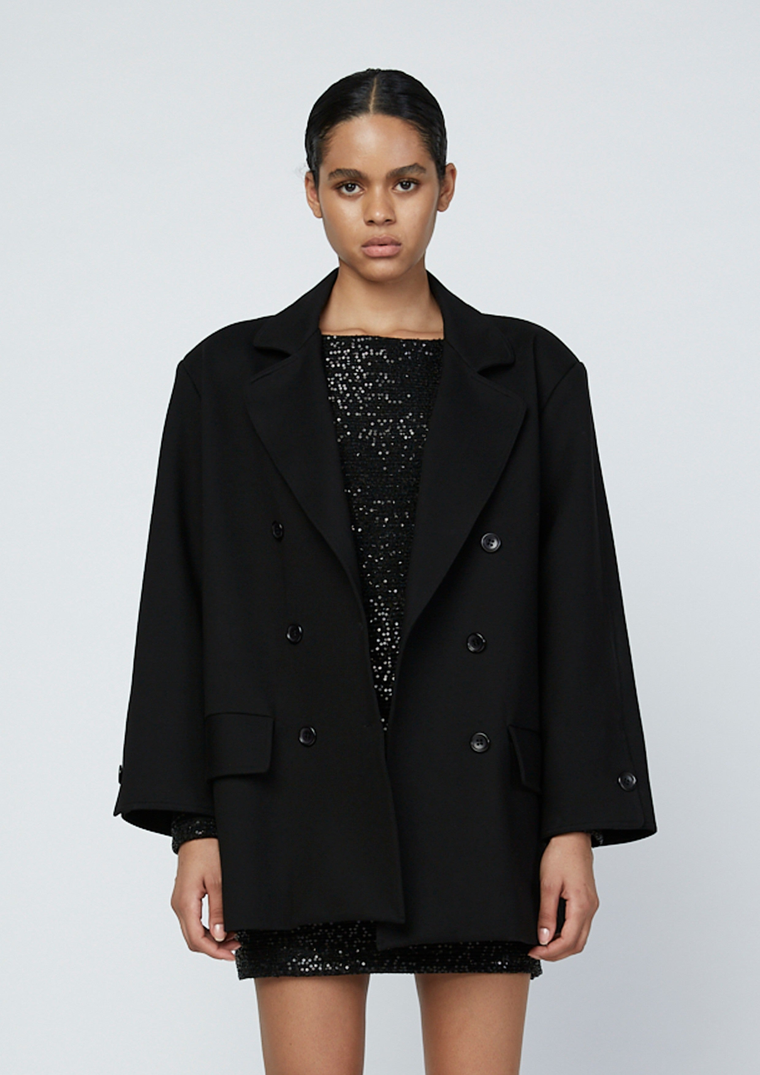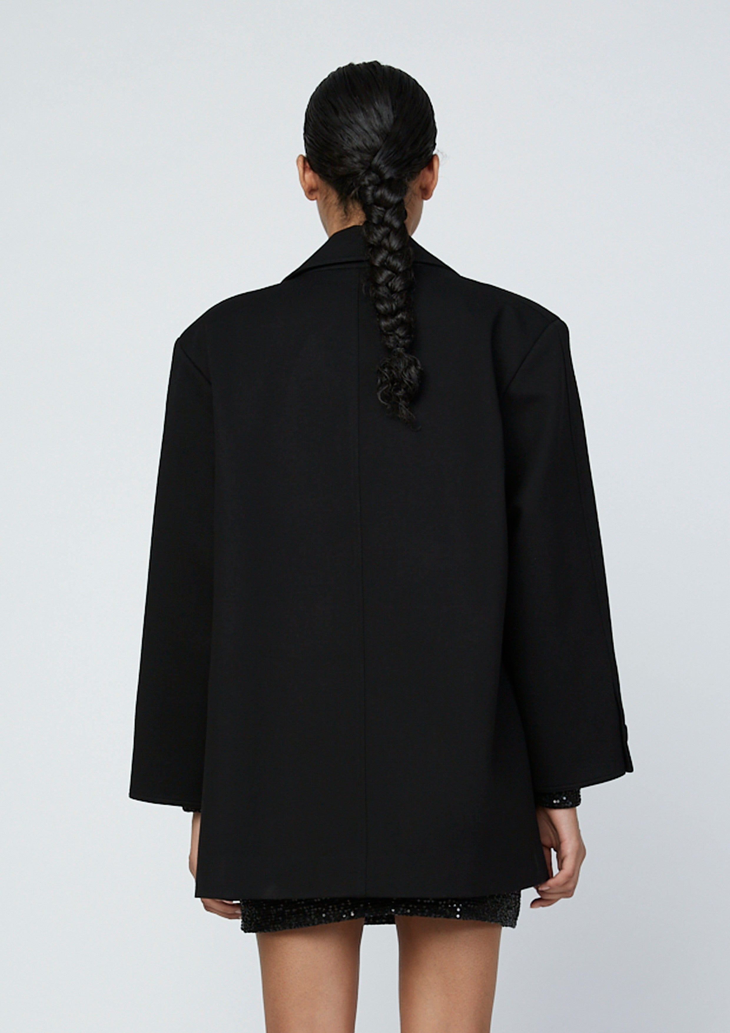 Blazer feito em Malha. Possui modelagem oversized, bolsos funcionais e fechamento frontal por botões.