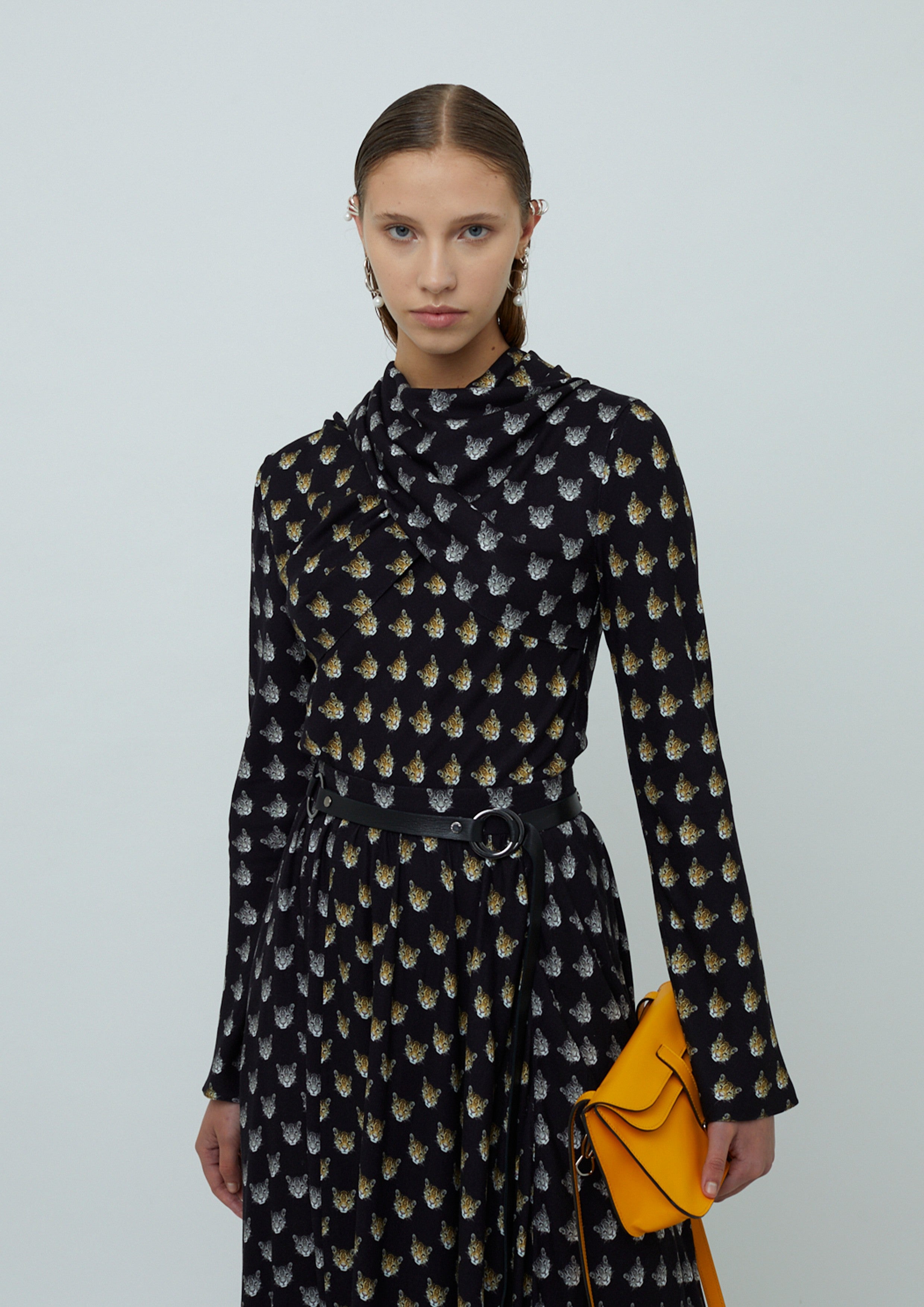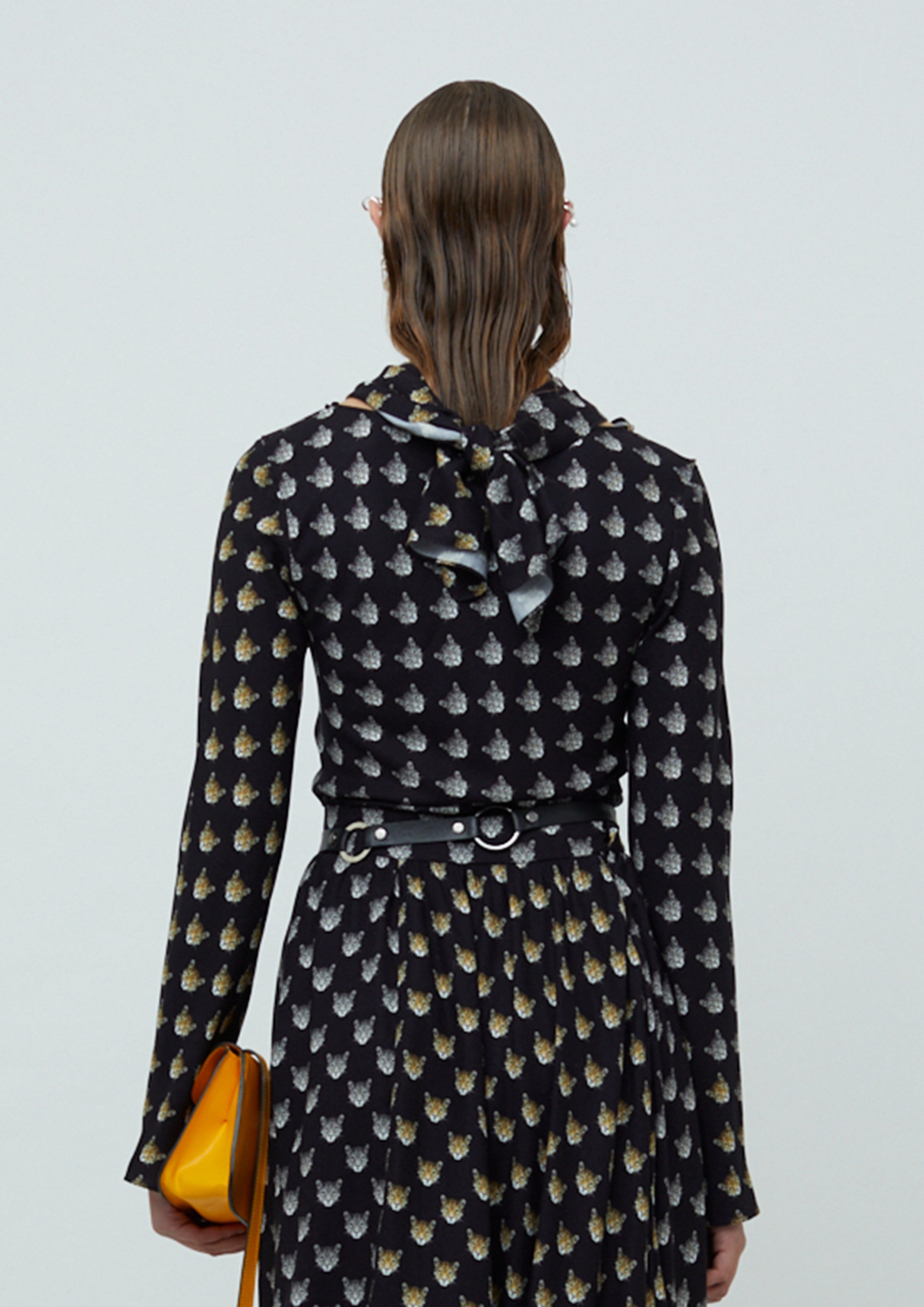 Blusa feita em Viscose estampada. Possui manga longa e lenços fixos que permitem diversas combinações e amarrações.