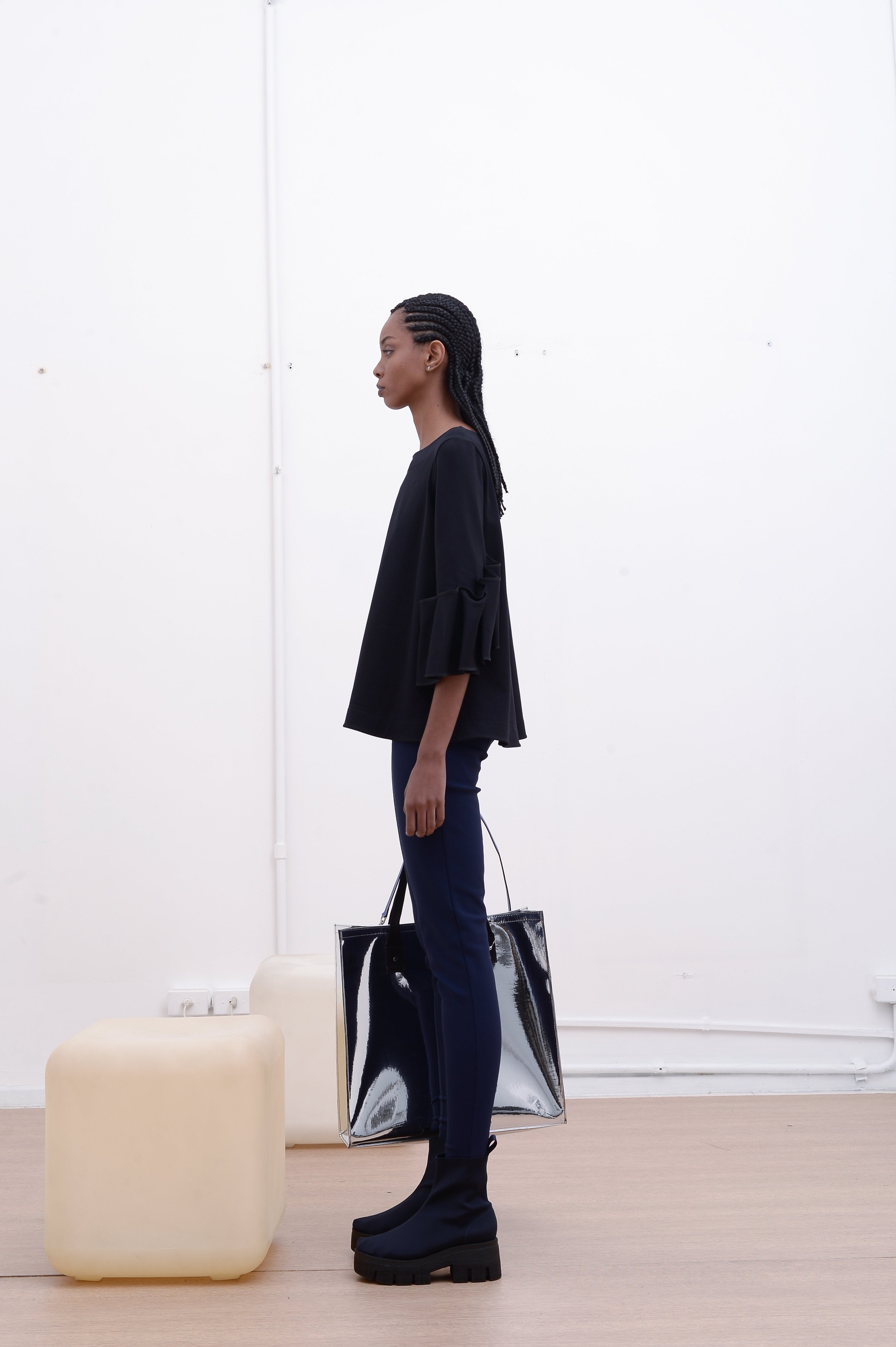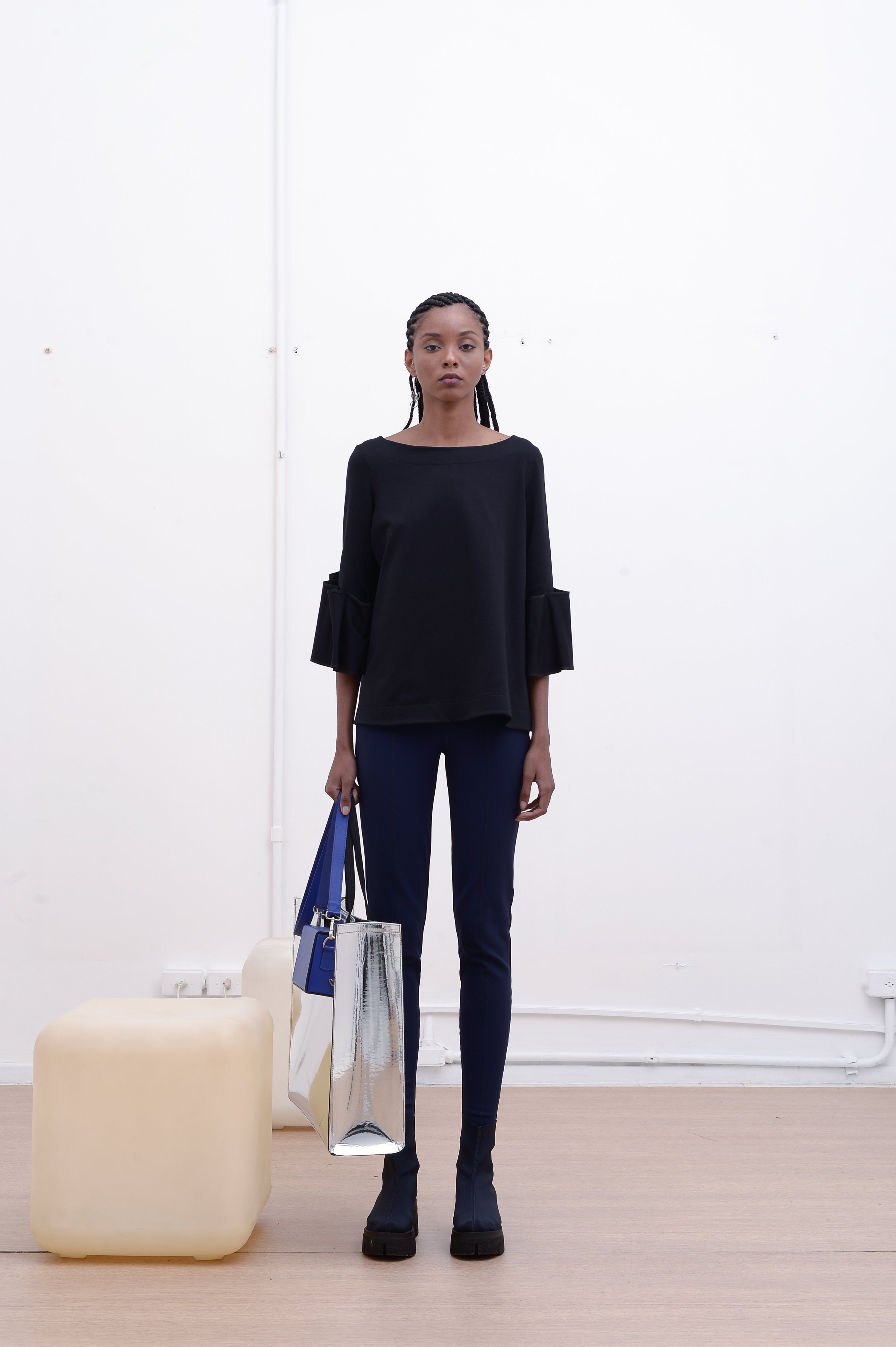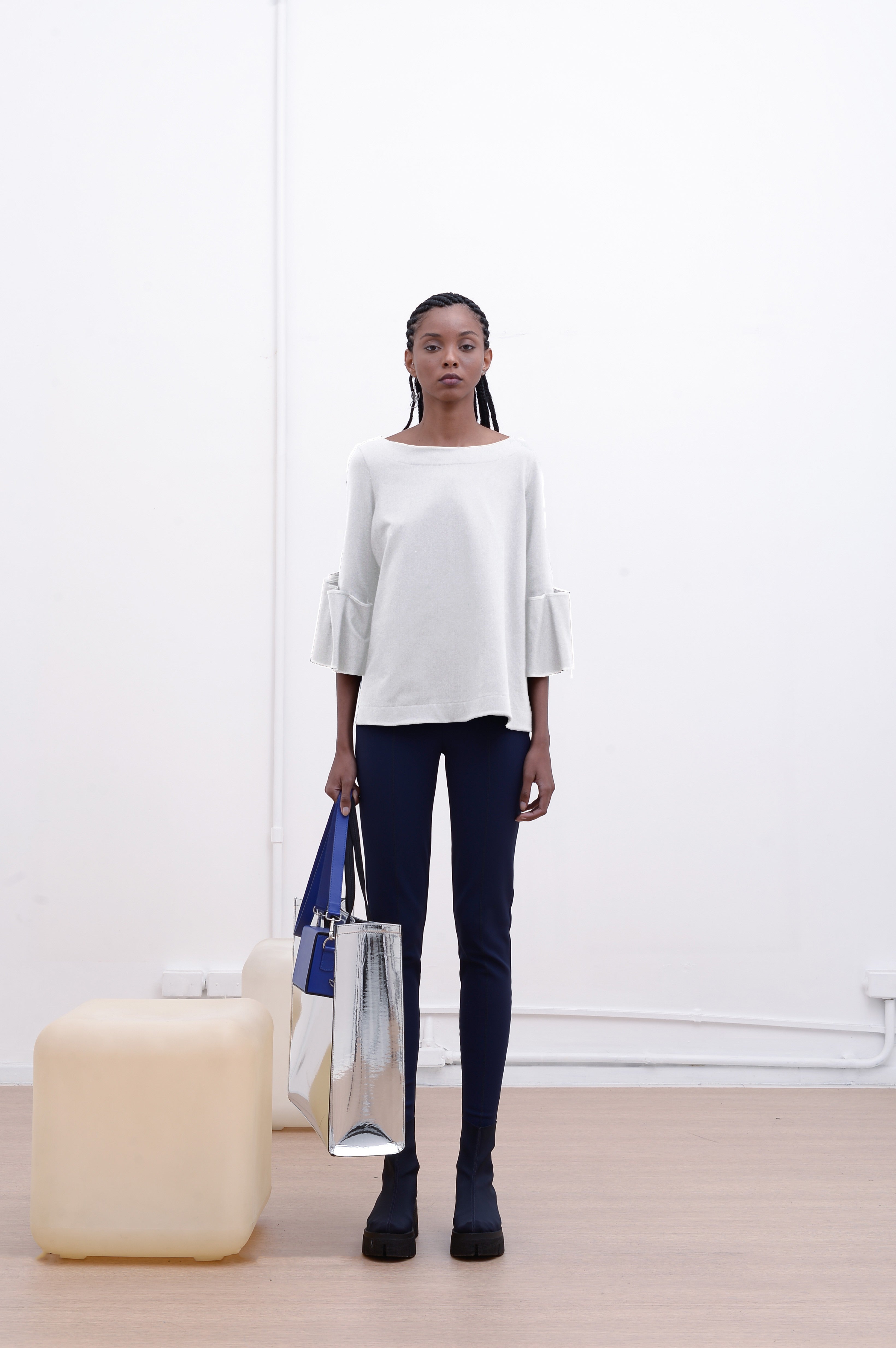 Blusa com malhas Gloria Coelho, produzida com tecido leve, possui decote canoa, mangas midi com detalhe franzido e shape solto.