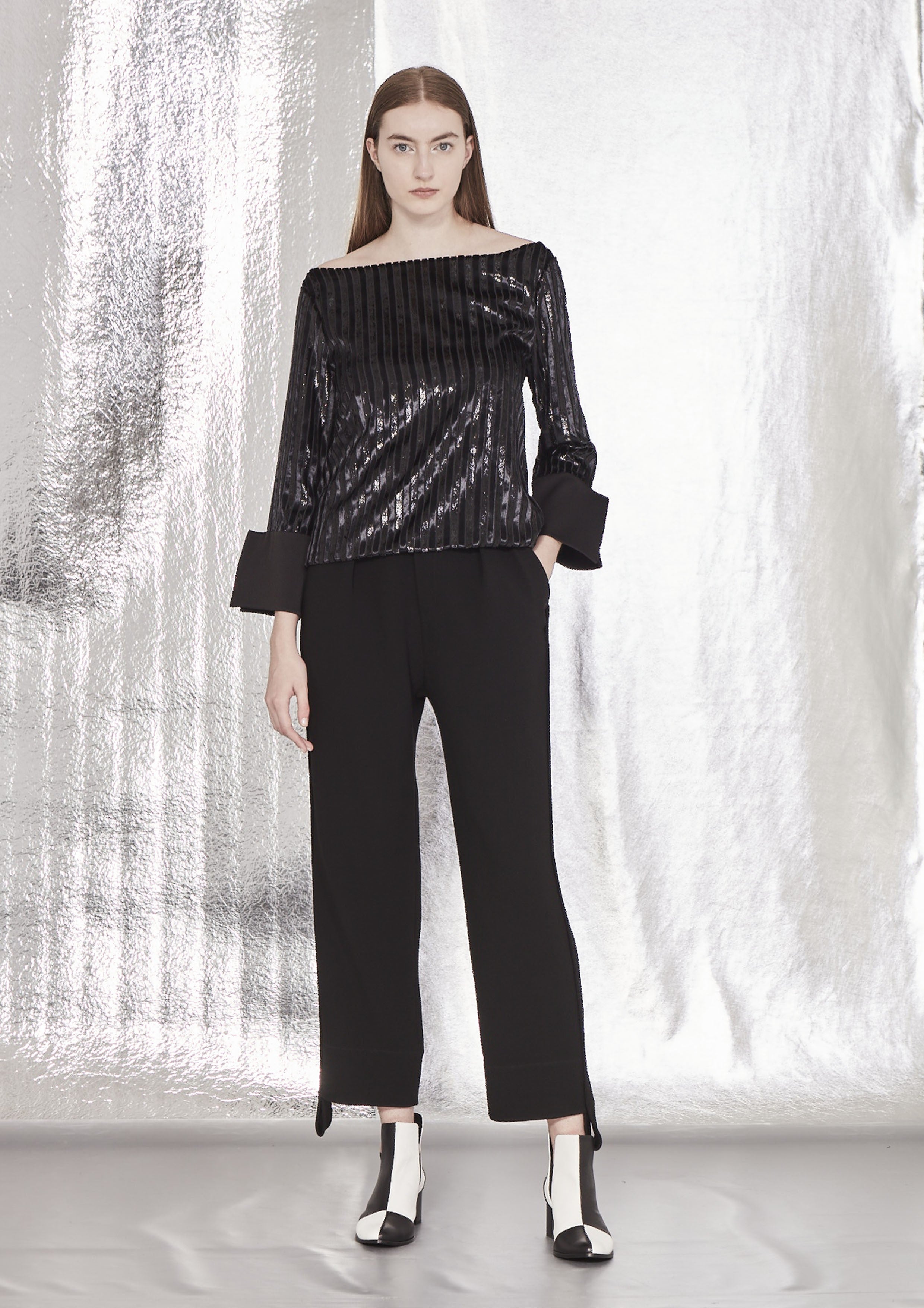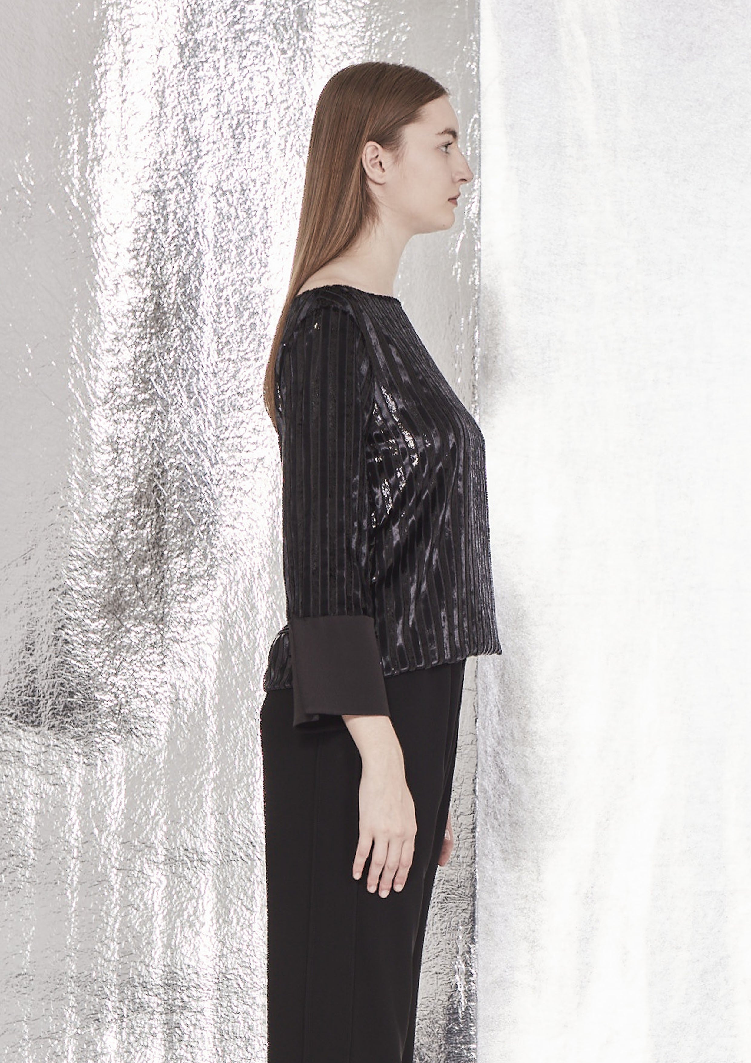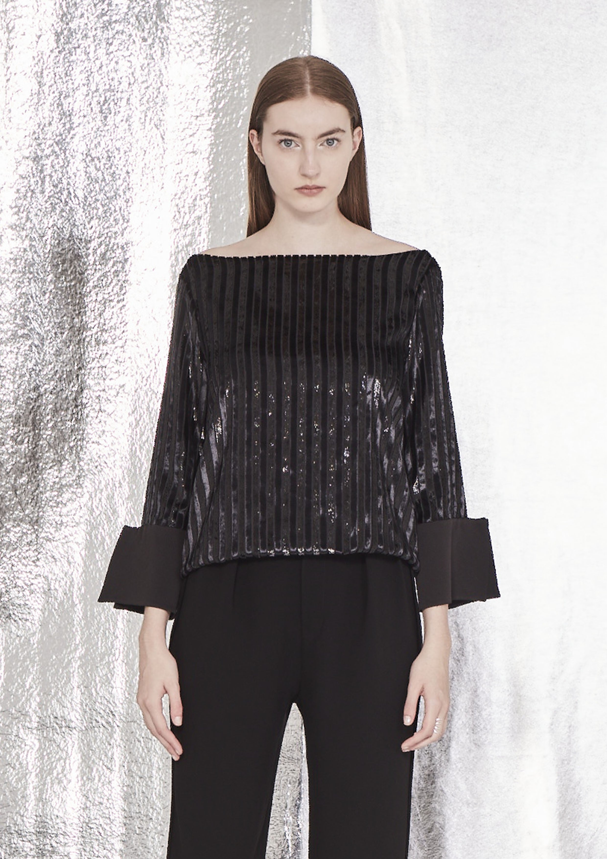 BLUSA DECOTE CANOA VELUDO STRIPE LINE