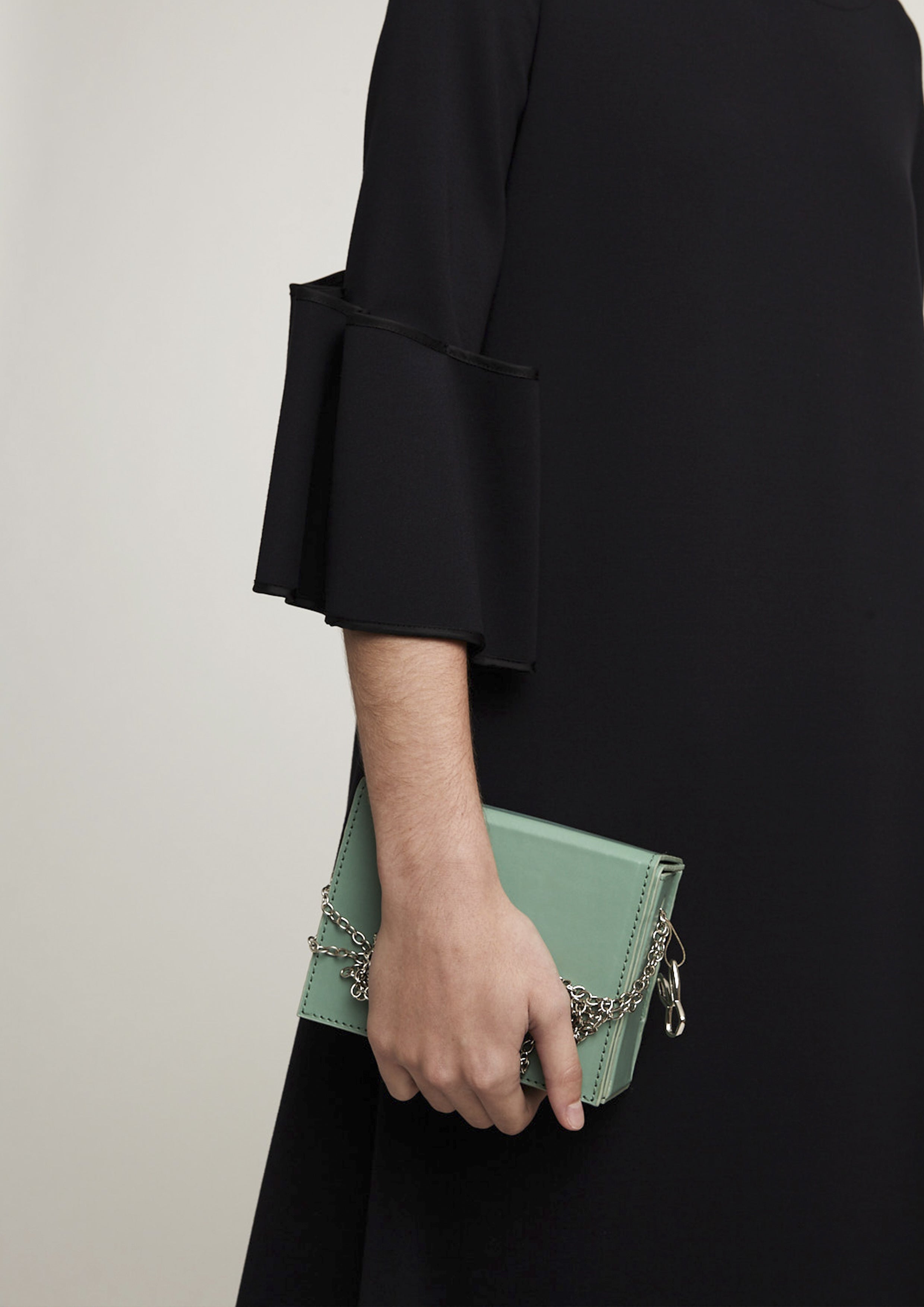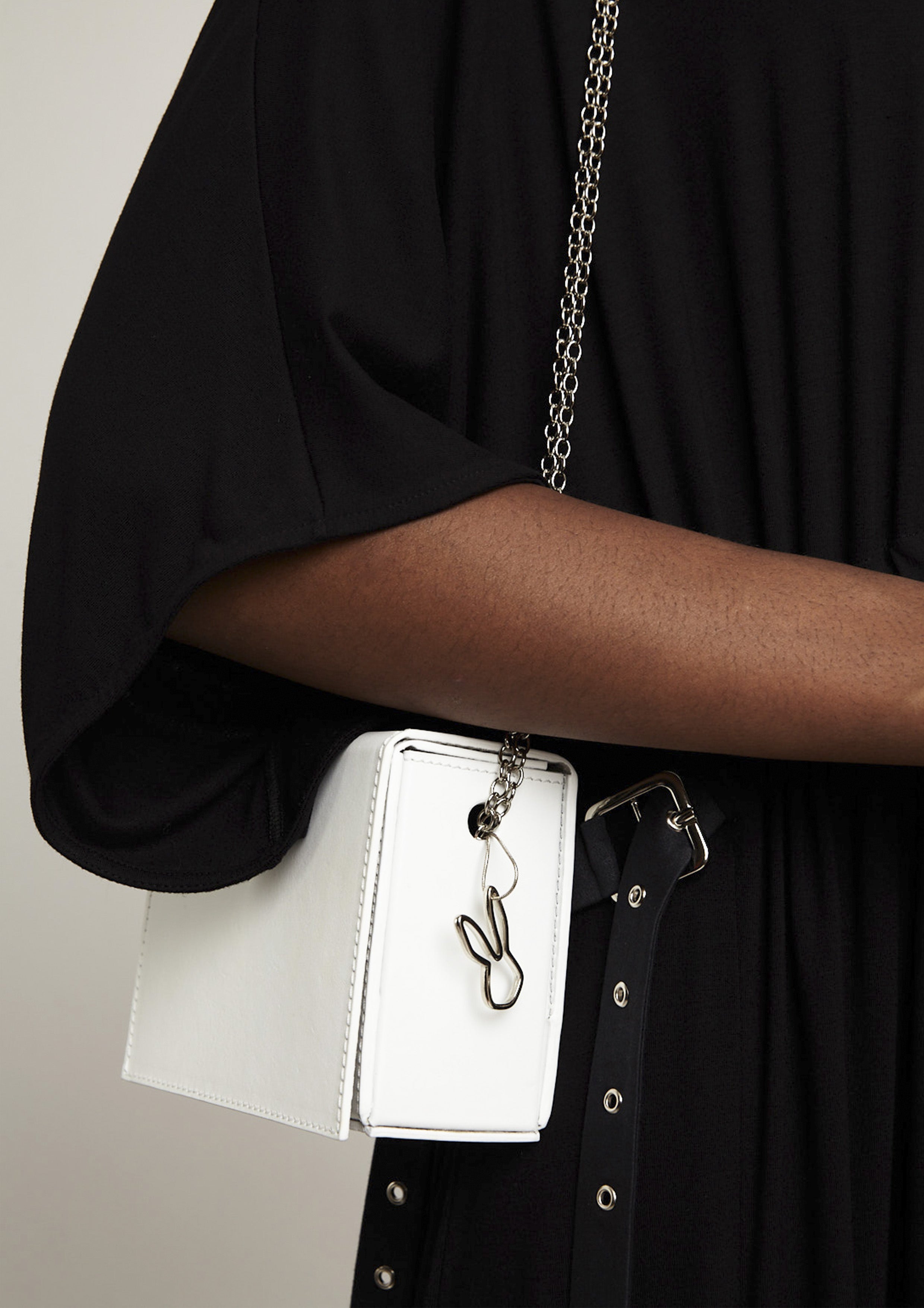 Bolsa de couro com modelagem retangular. Possui bolso interno, alça de mão e de ombro,