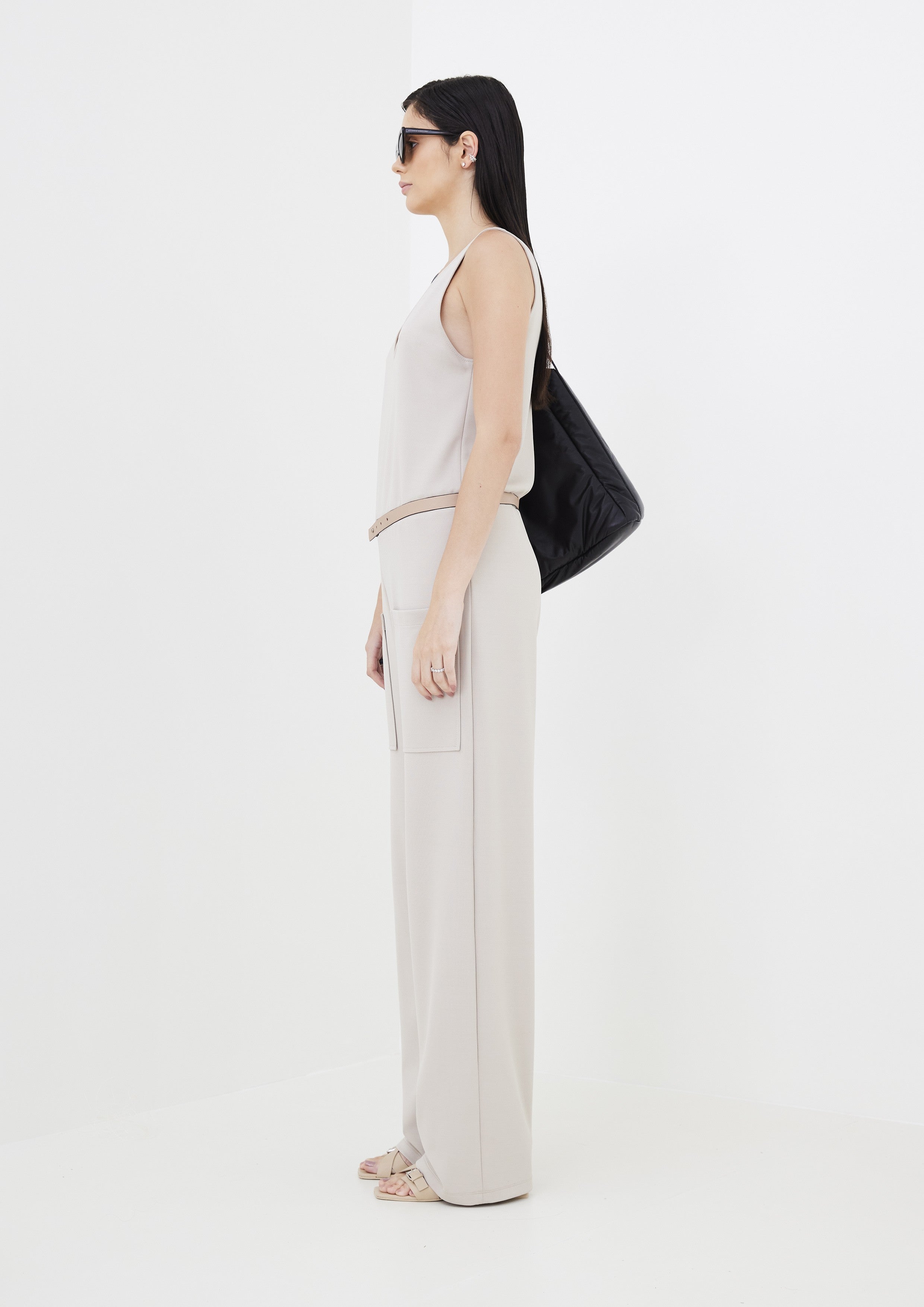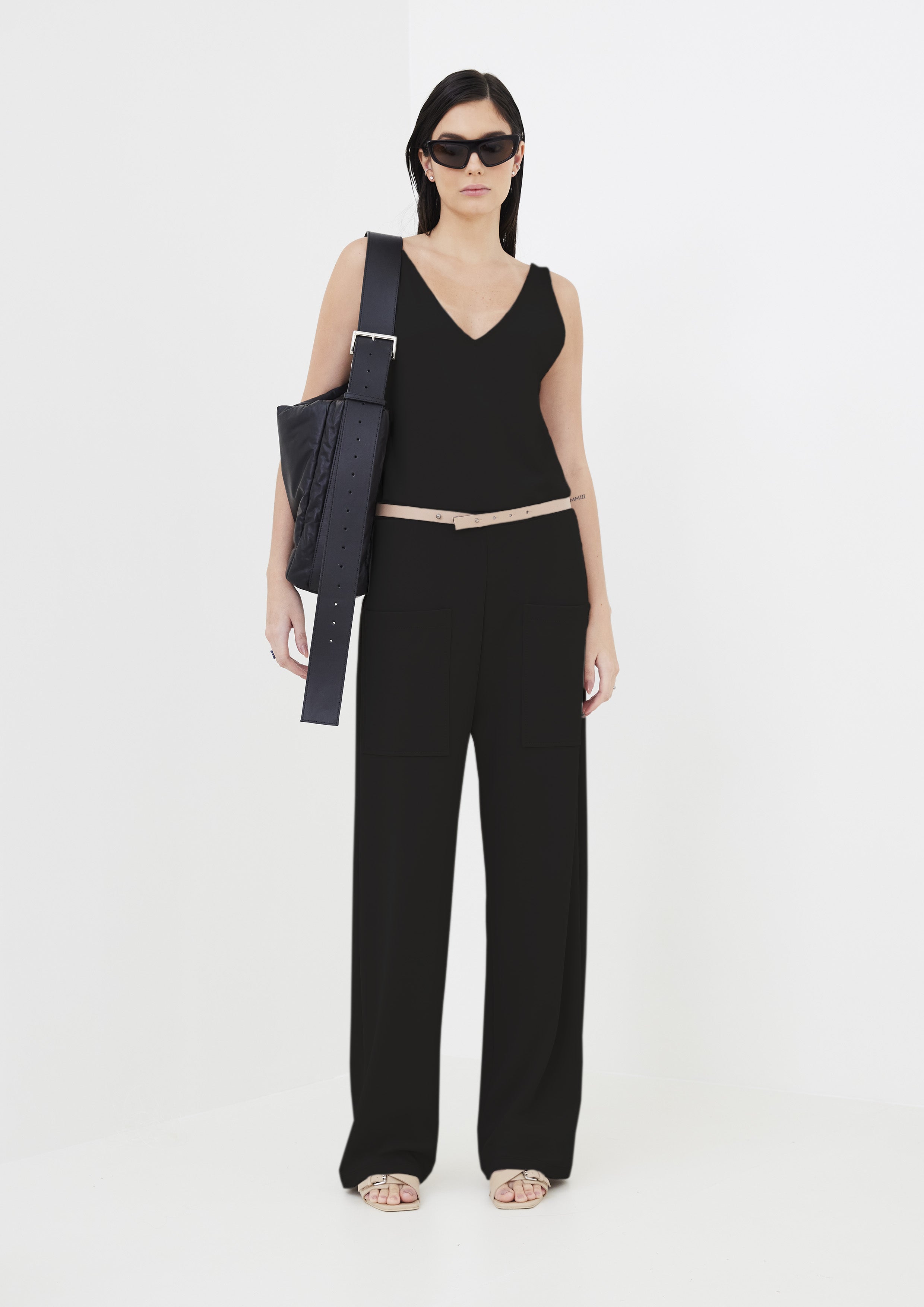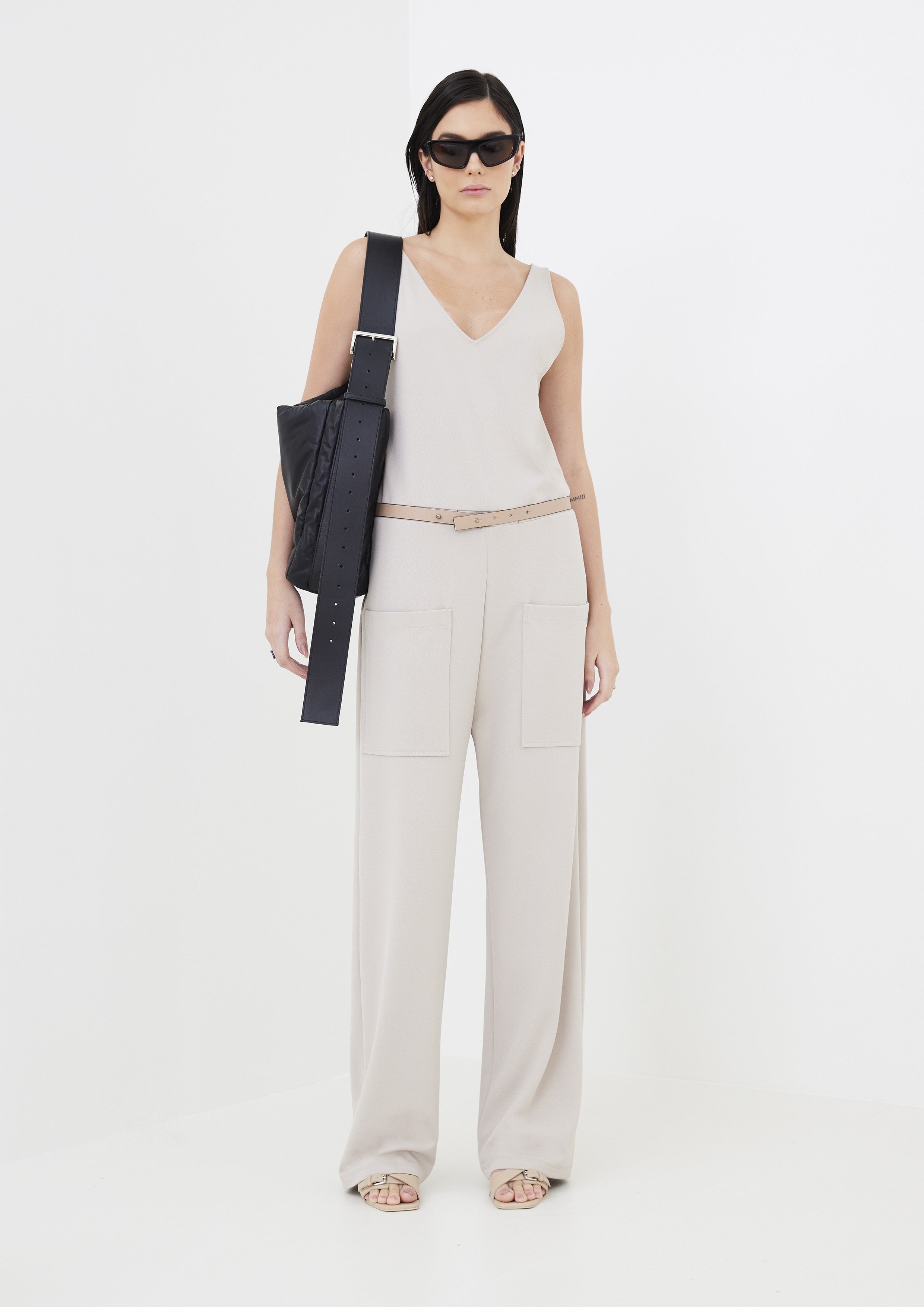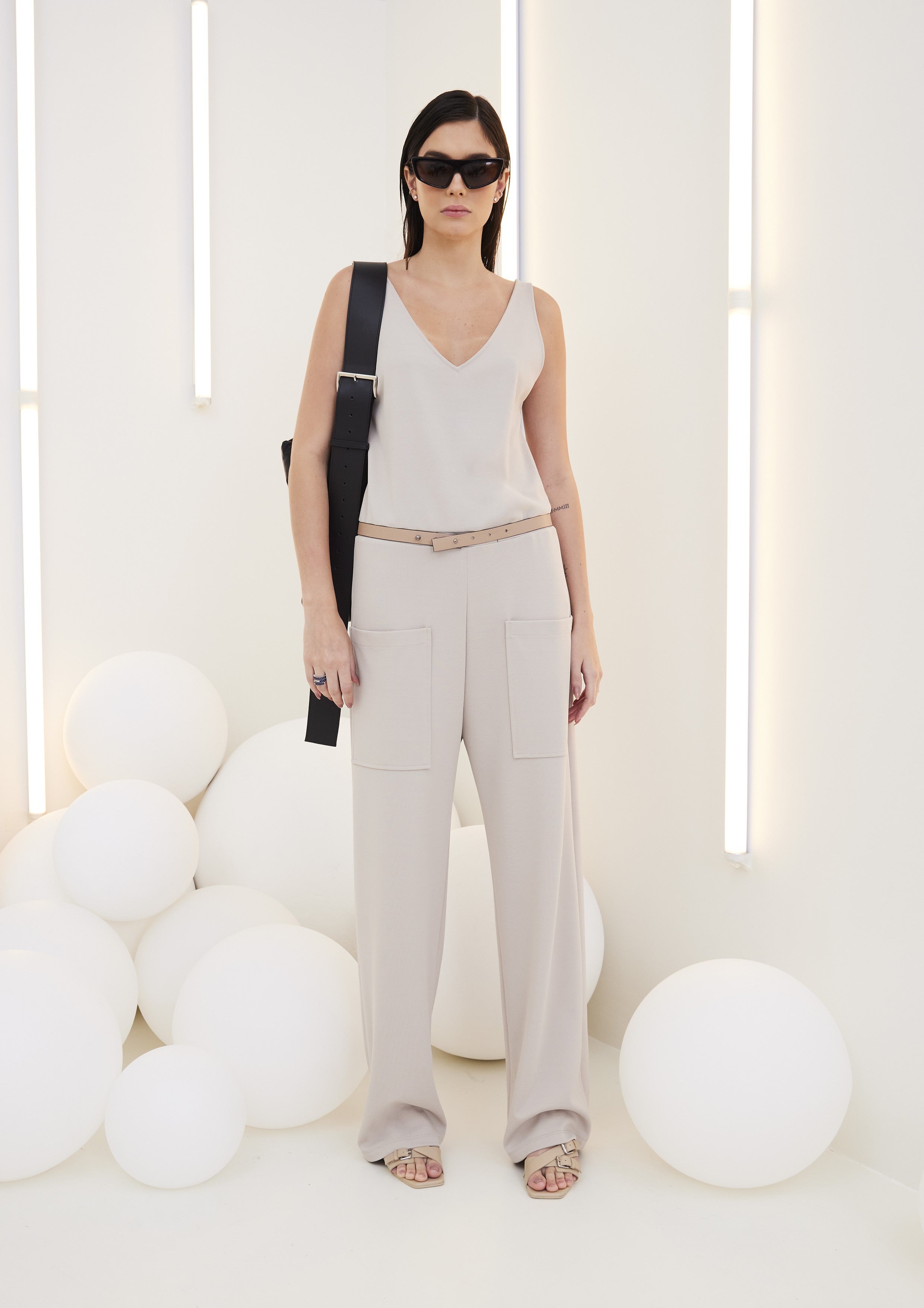 O macacão longo sem manga confeccionado em ryon e poliéster. Com design elegante e versátil, este macacão é ideal para diversas ocasiões.