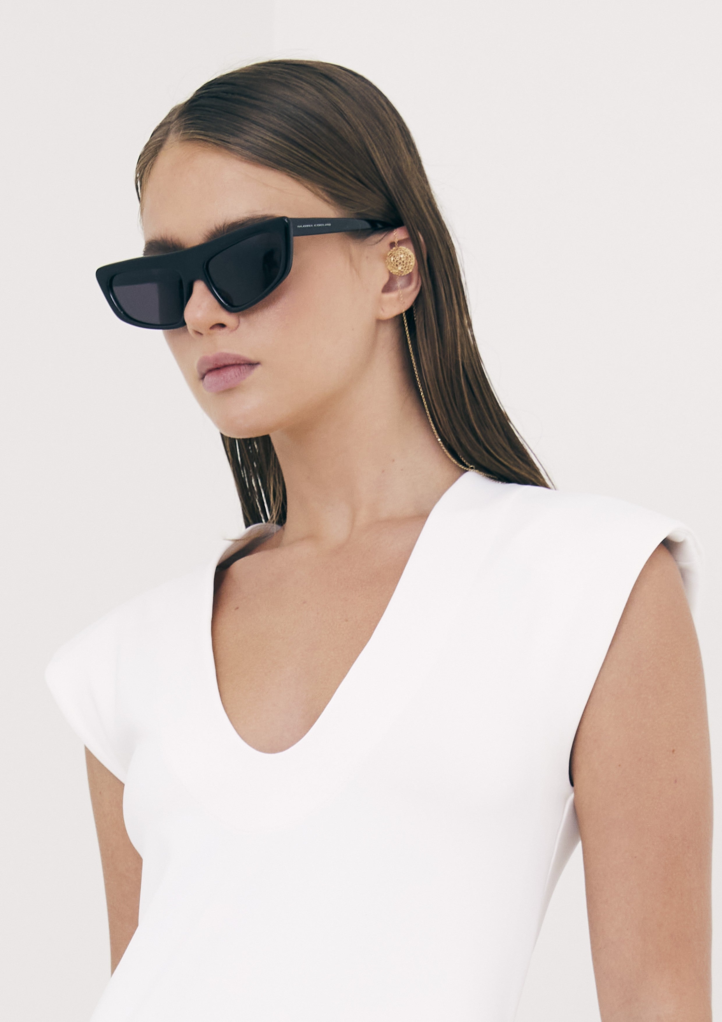 Os Óculos de Sol Gatinho apresenta um design clássico que adiciona um toque de ousadia e sofisticação. Enquadrando elegantemente o rosto e realçando seus traços únicos. As hastes delicadamente adornadas e o detalhe metálico sutil complementam o charme atemporal desses óculos.