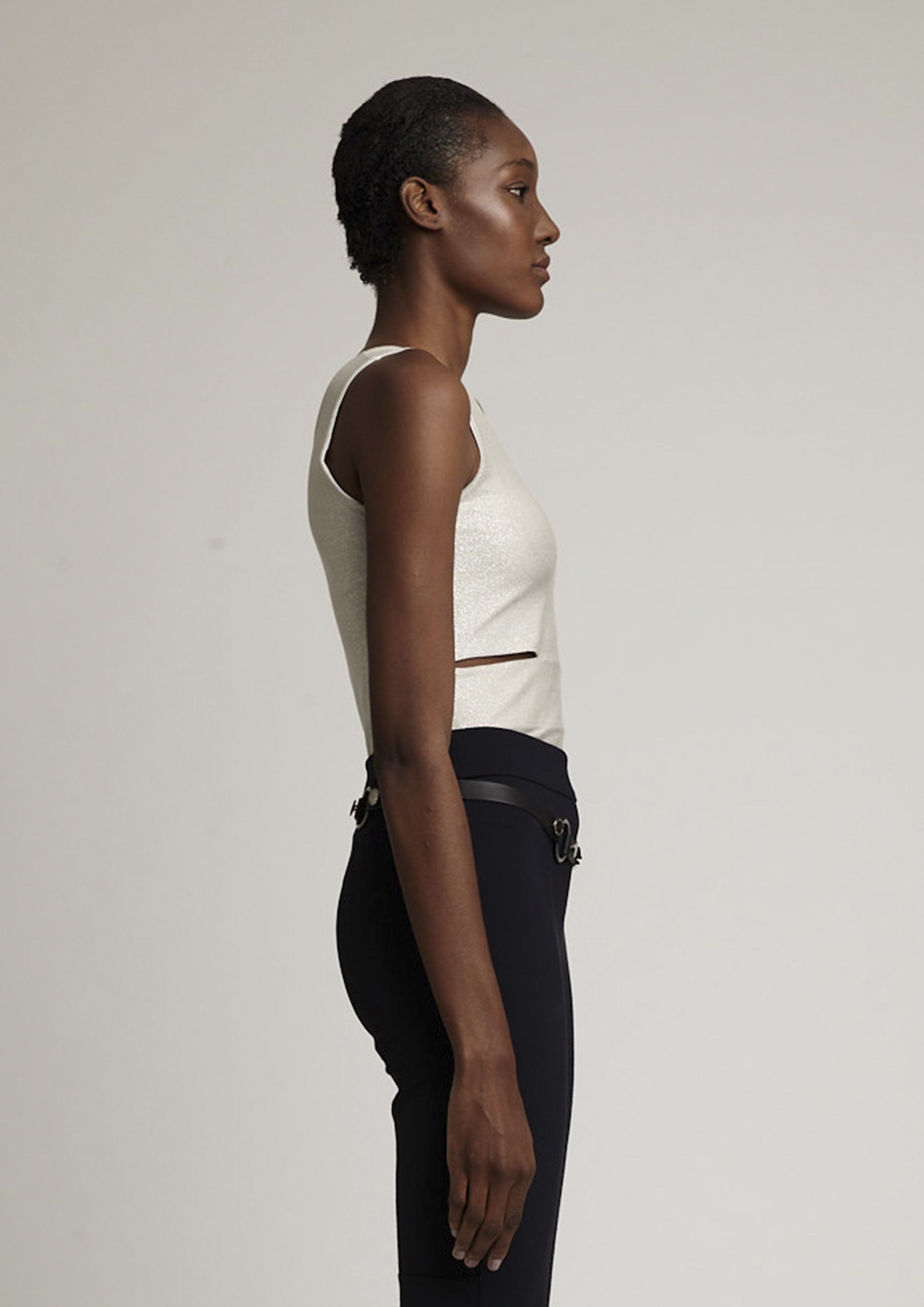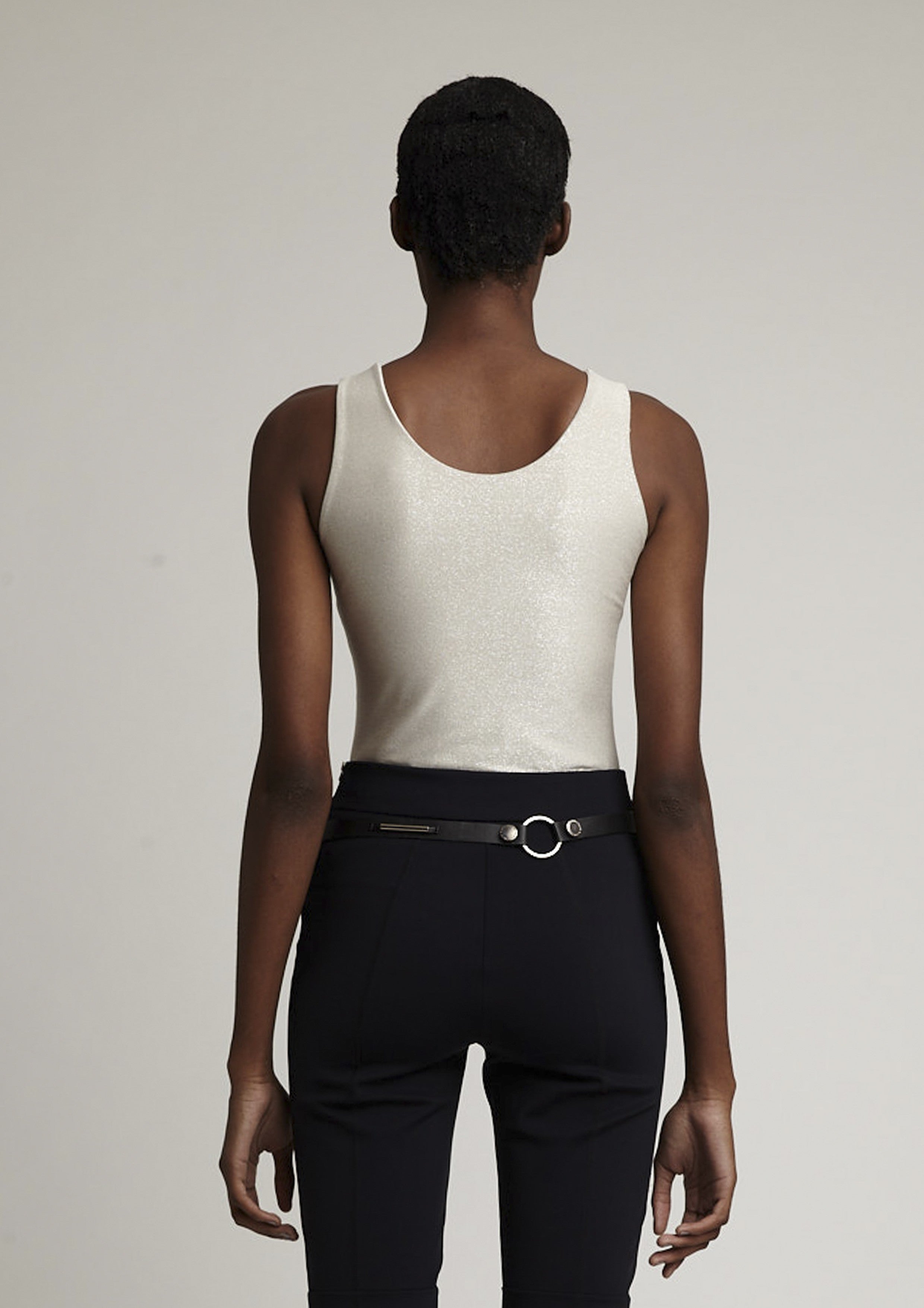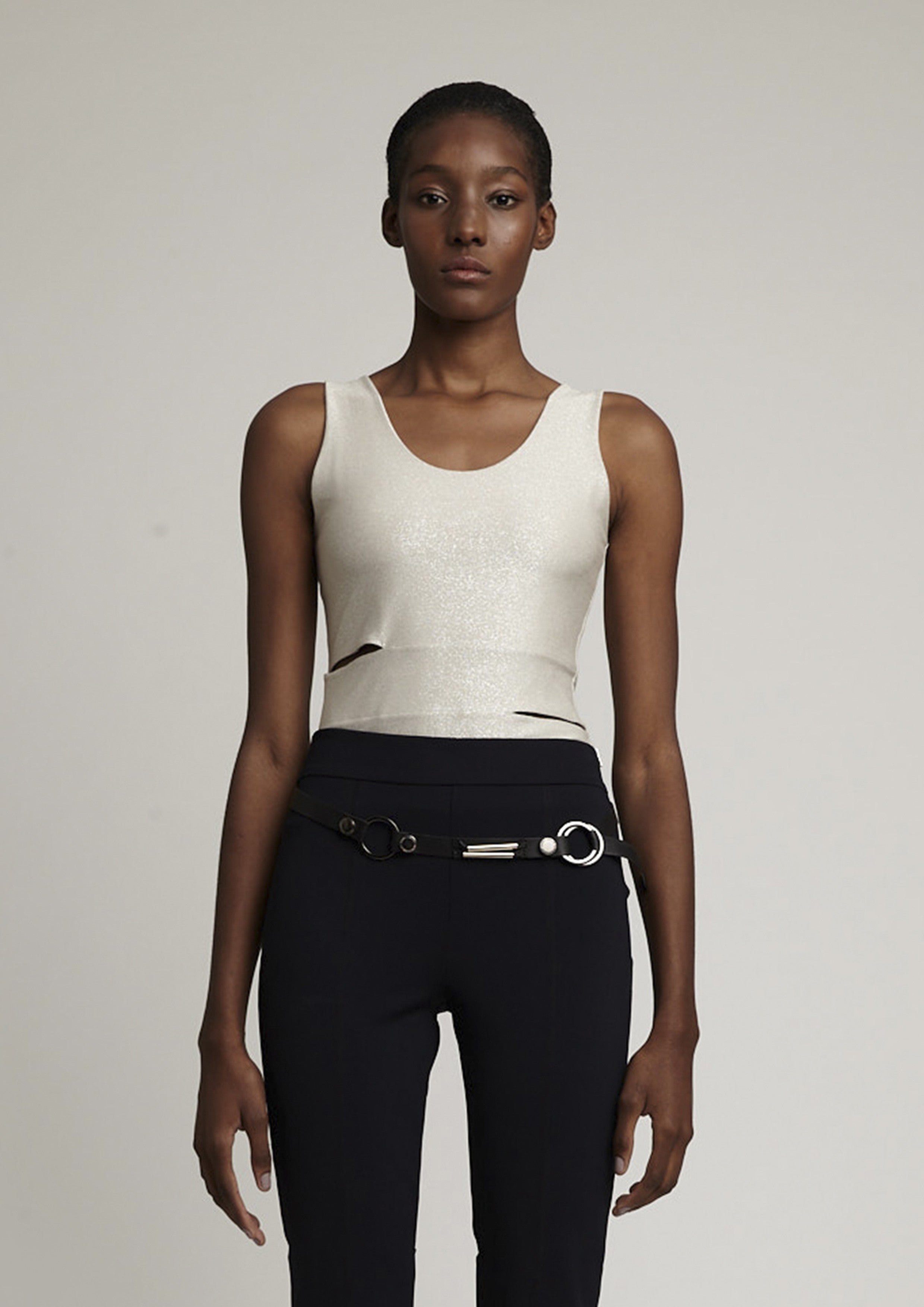 caimento perfeito da peça. A regata vazada com brilho segue essa fantástica inspiração e