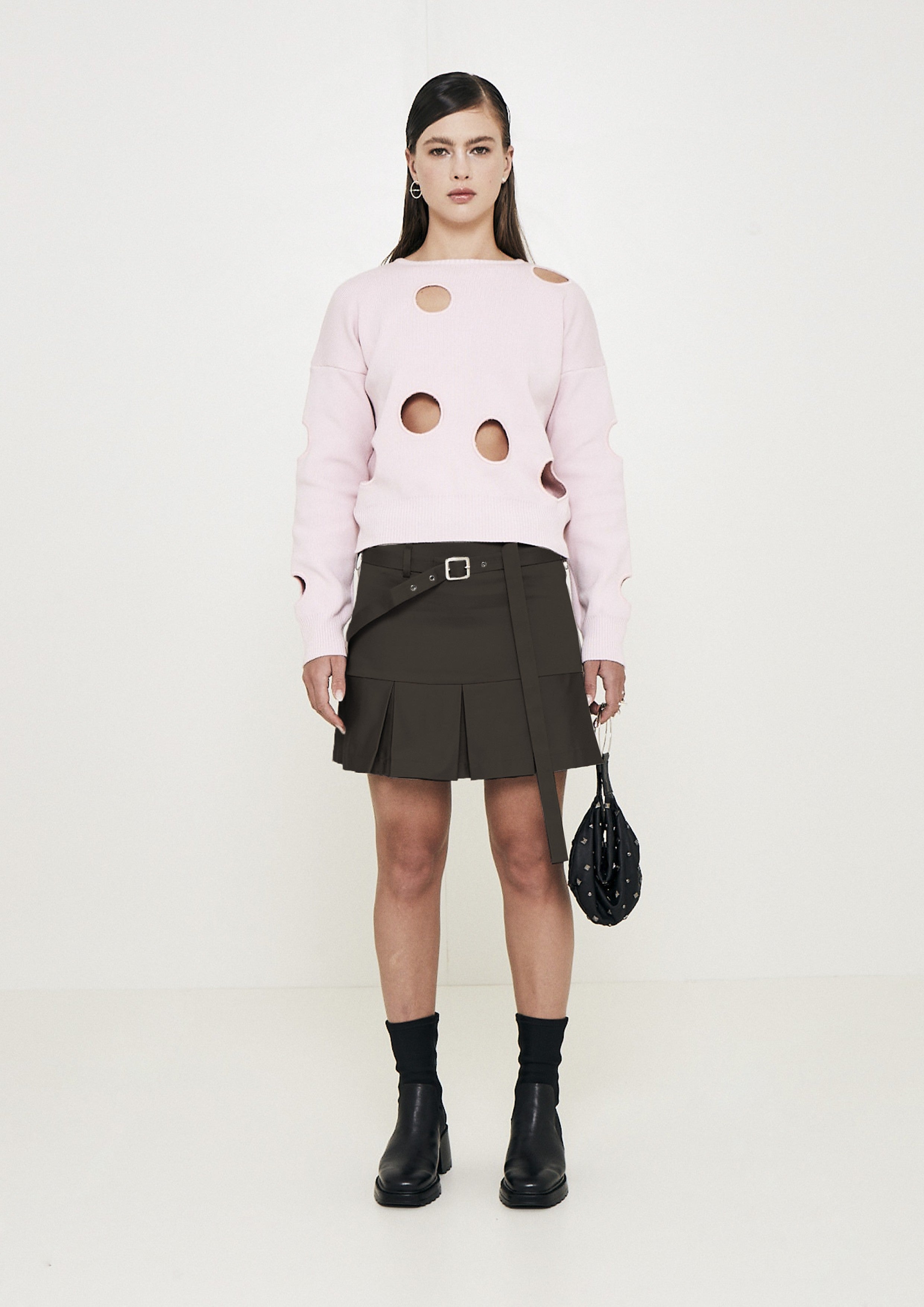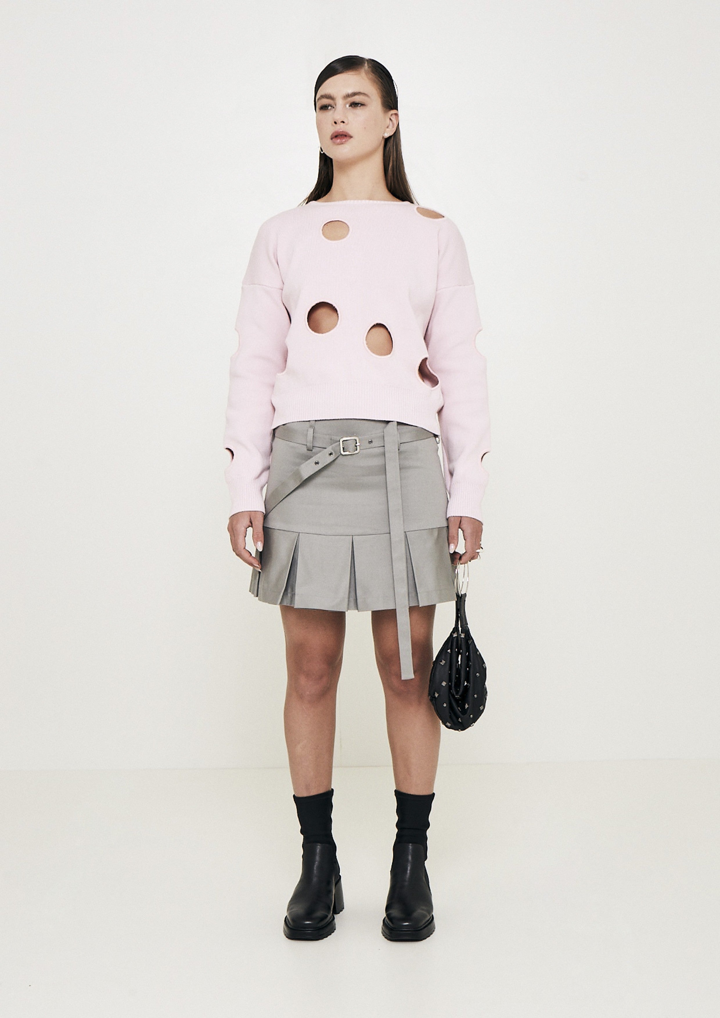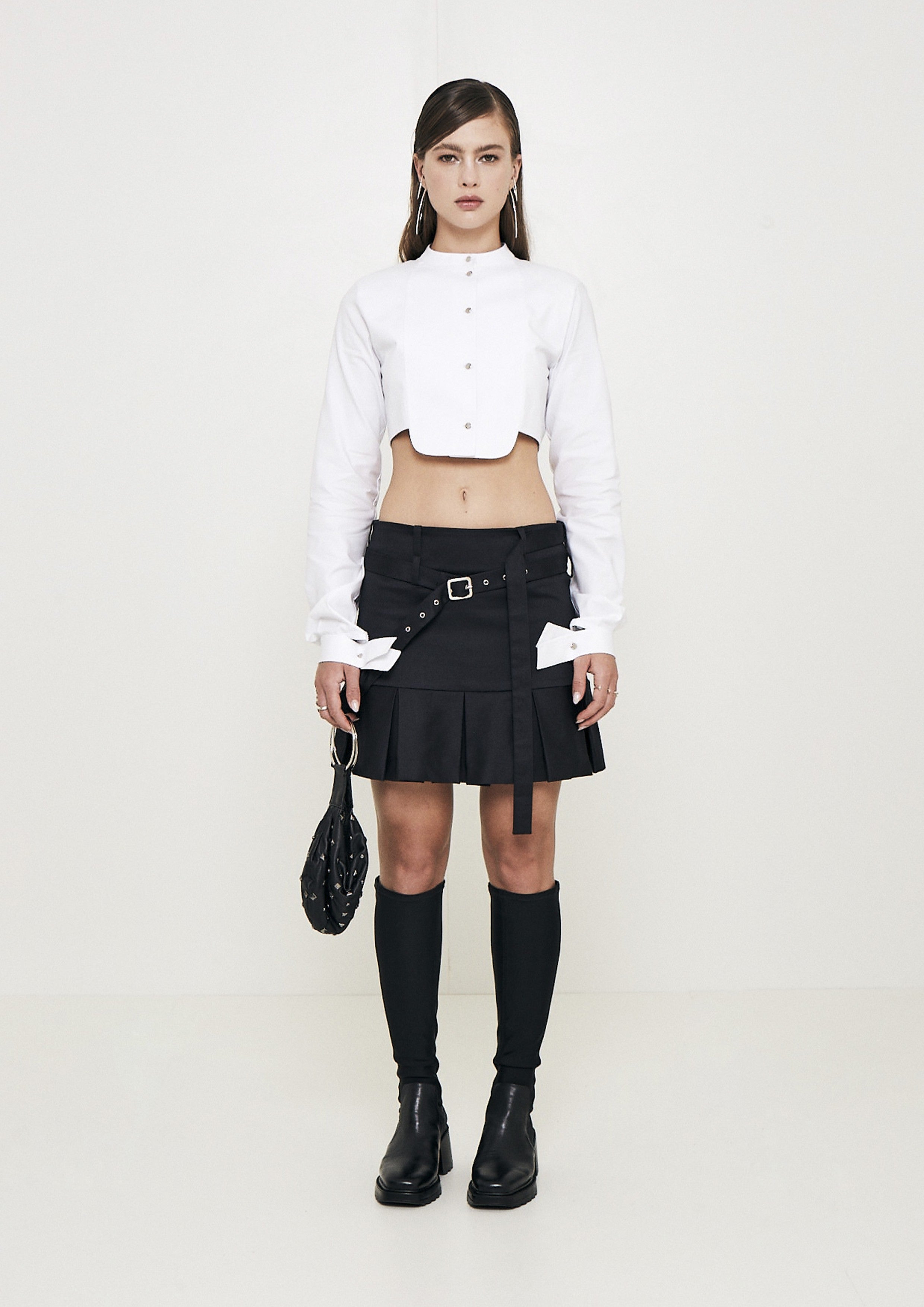 Mini saia com pregas na barra e passantes com cinto de ajuste