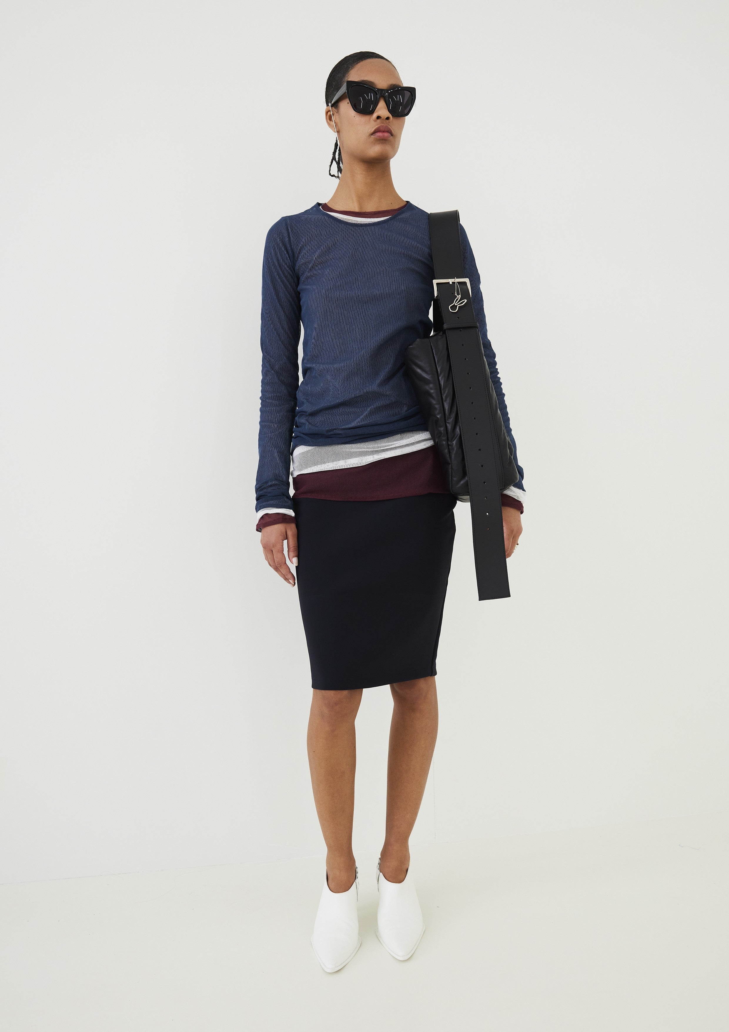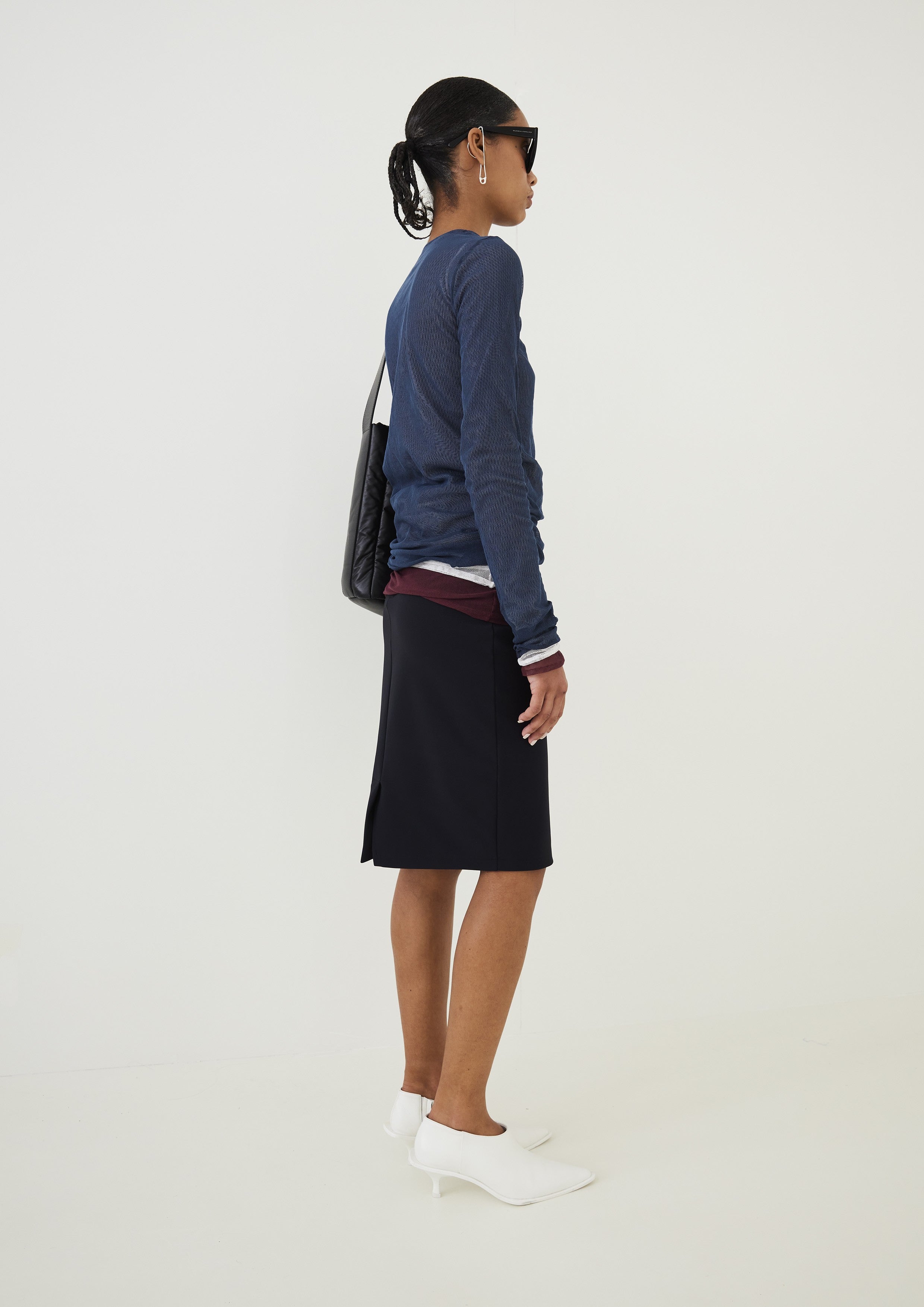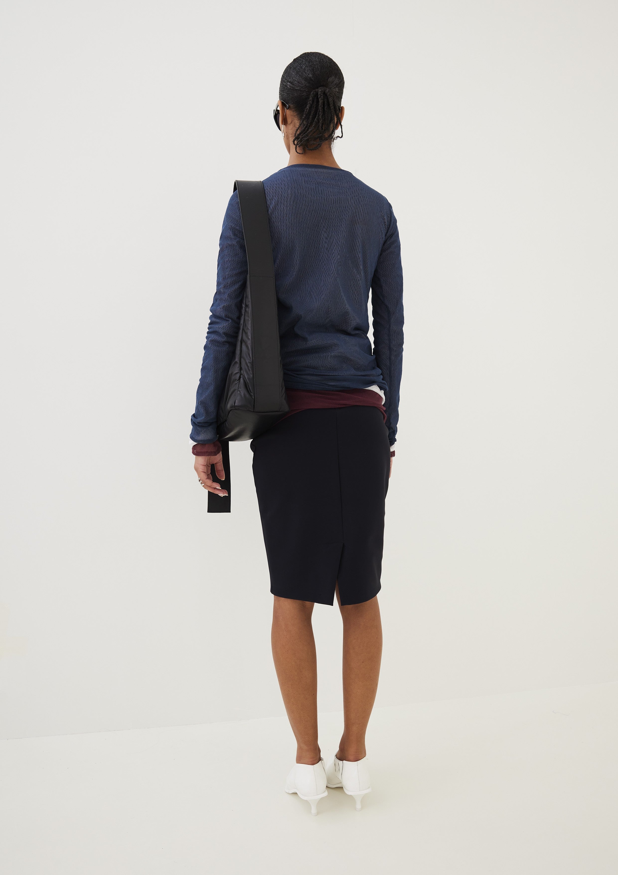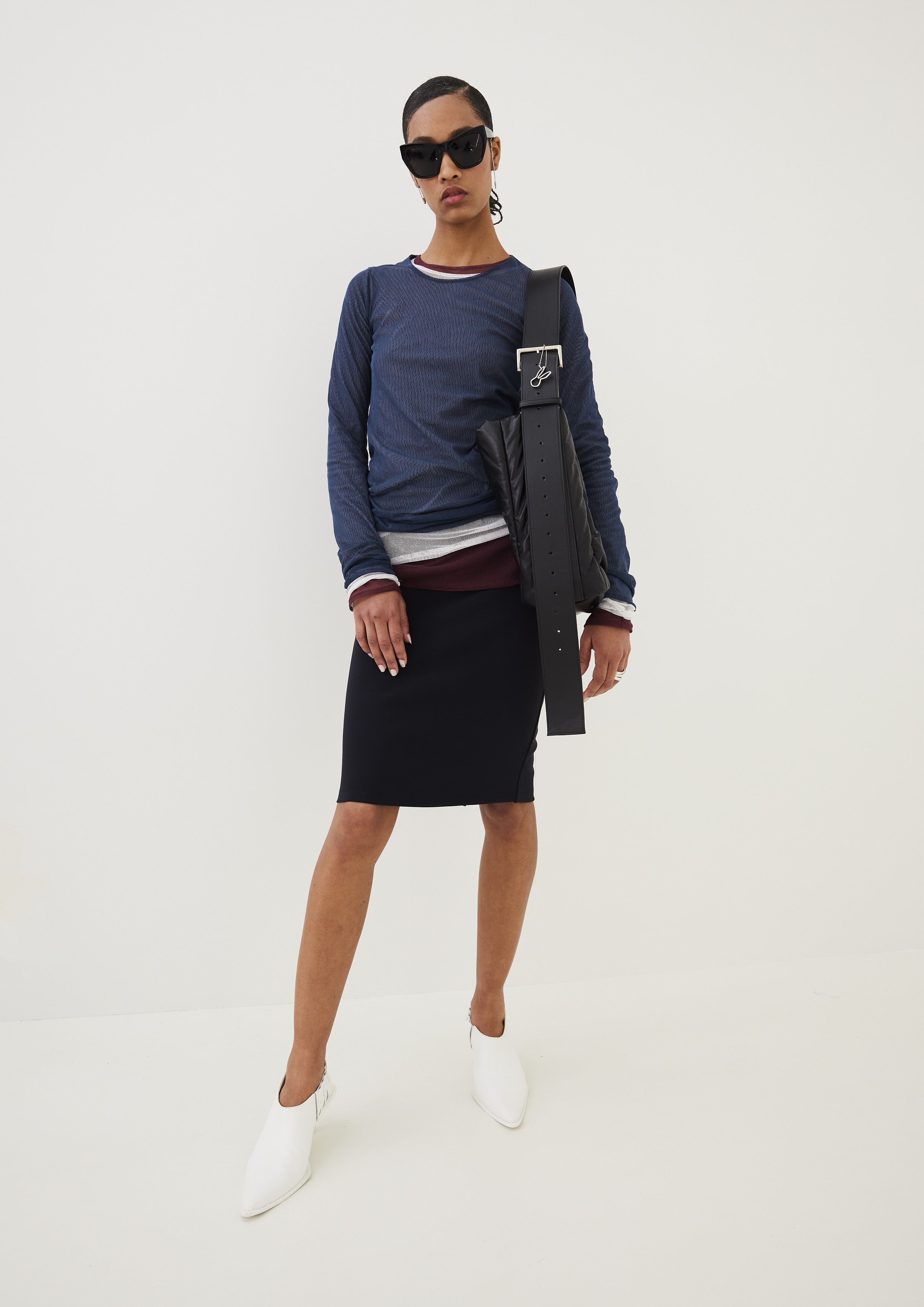 A elegante Saia Double Tech Reta, confeccionada em poliamida e elastano, com o tecido TK desenvolvido por Gloria Coelho em 2001. O tecido tecnológico estimula a circulação sanguínea e auxilia no combate de até 3% da celulite, resultando em uma pele mais firme com o uso continuo.