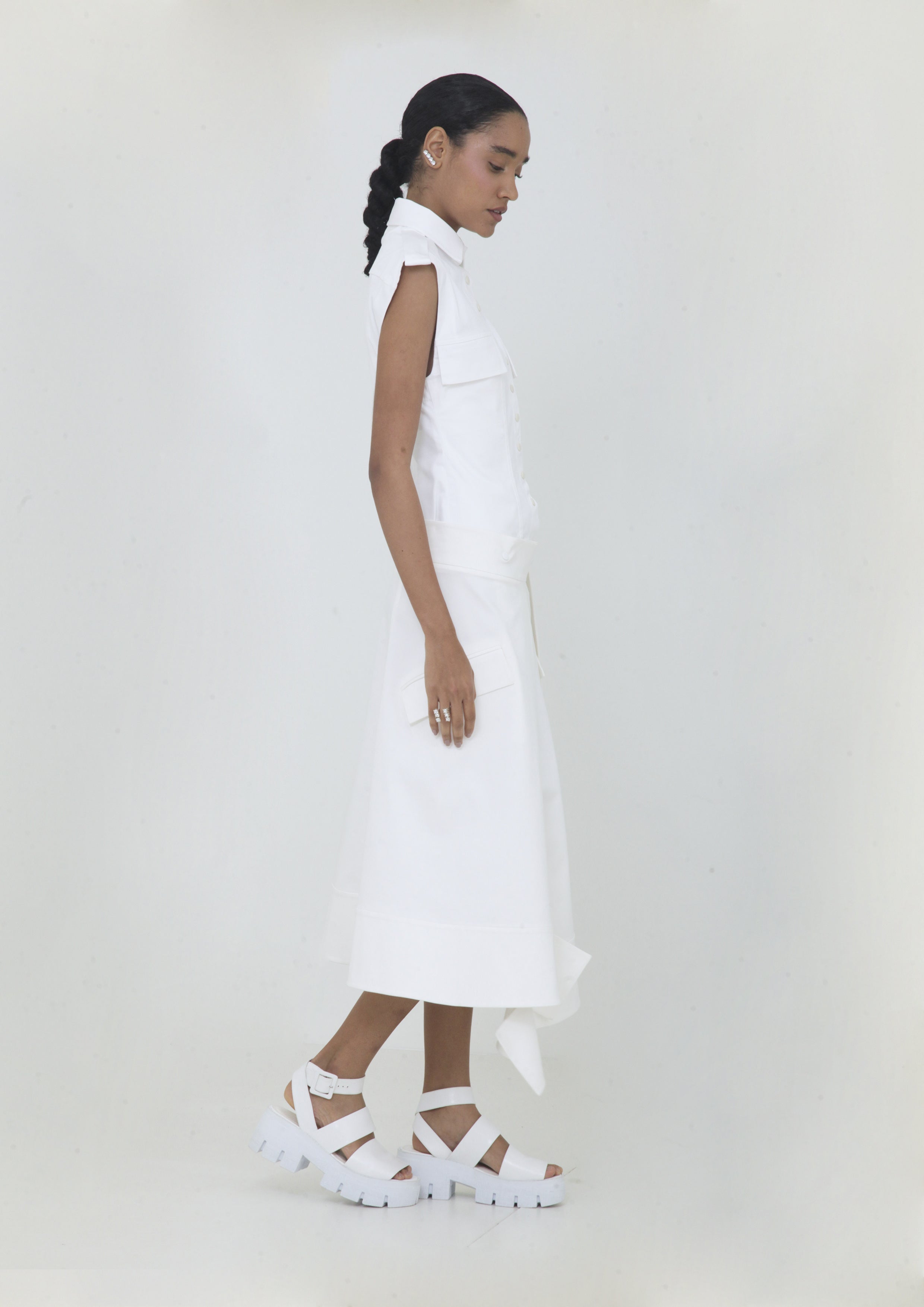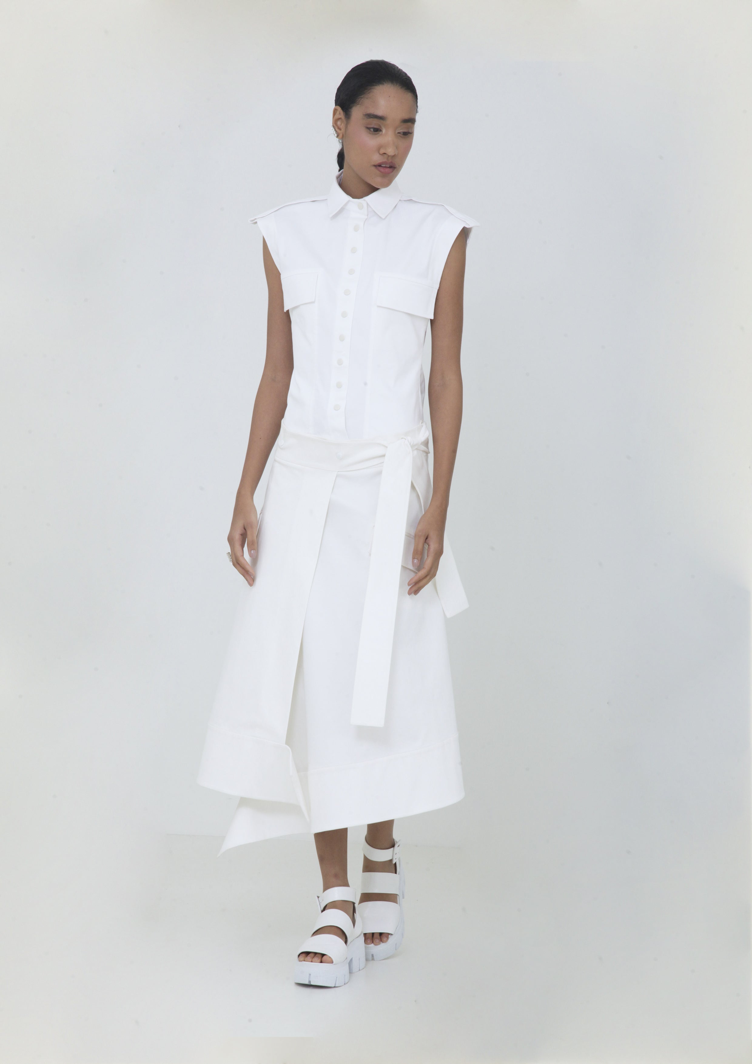 A Saia Envelope de Algodão é uma peça contemporânea que traduz elegância minimalista com um toque de design utilitário. Confeccionada em tecido premium de algodão com elastano, proporciona conforto e caimento estruturado. Seu design assimétrico, com sobreposição frontal e detalhe de bolso utilitário, adiciona sofisticação à silhueta, enquanto o fecho lateral traz praticidade e modernidade. Uma peça versátil que transita com naturalidade entre produções urbanas e composições sofisticadas.