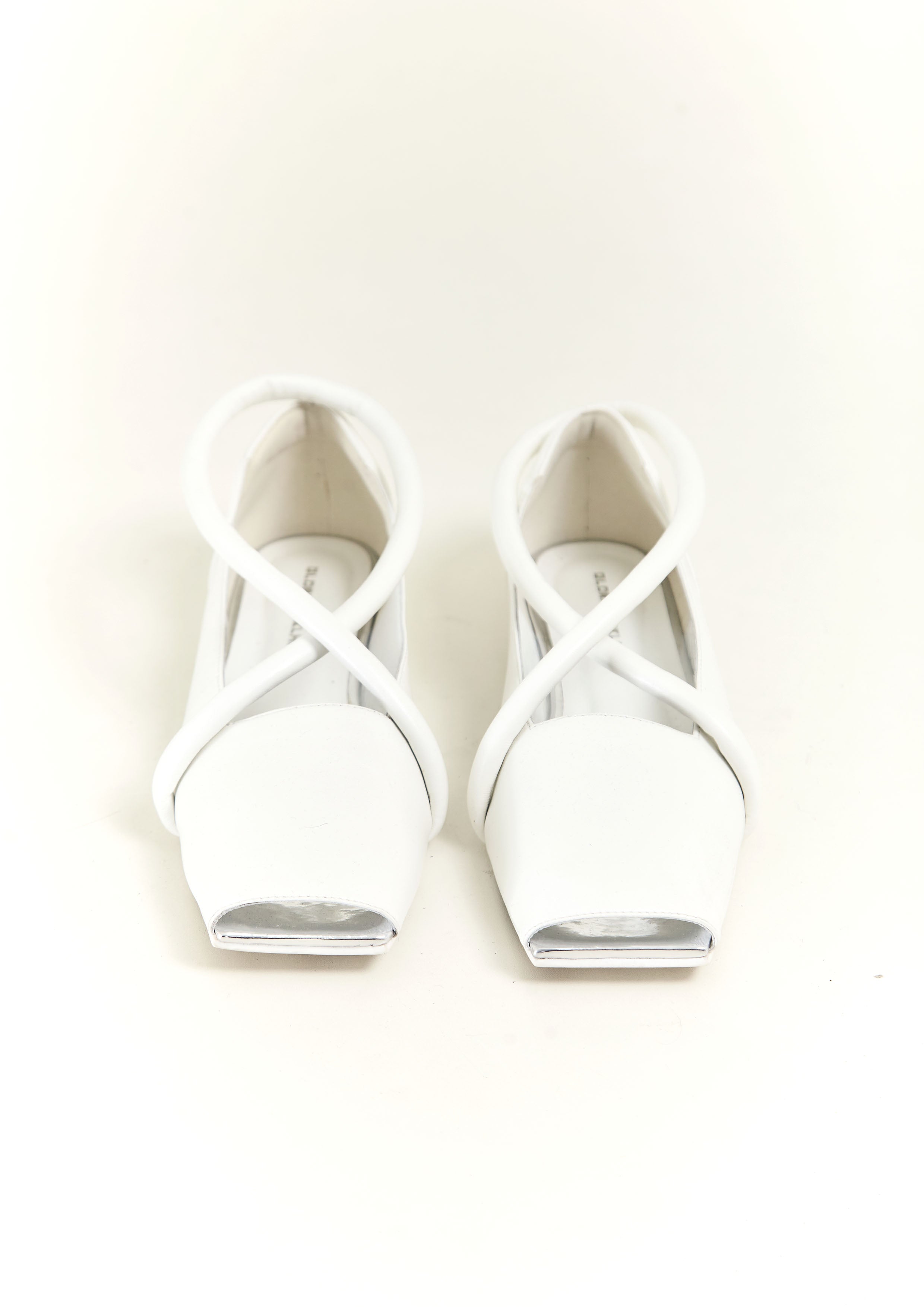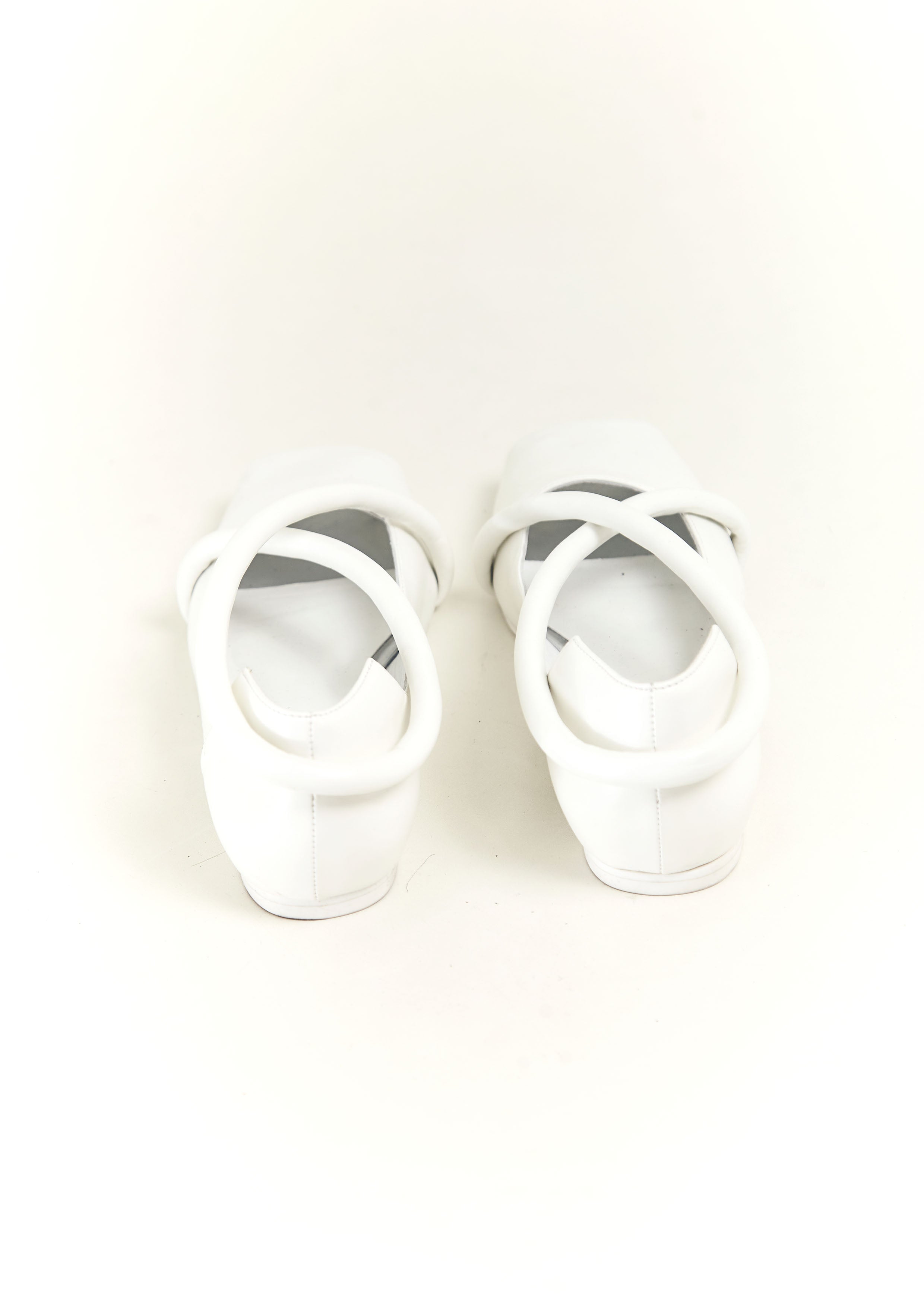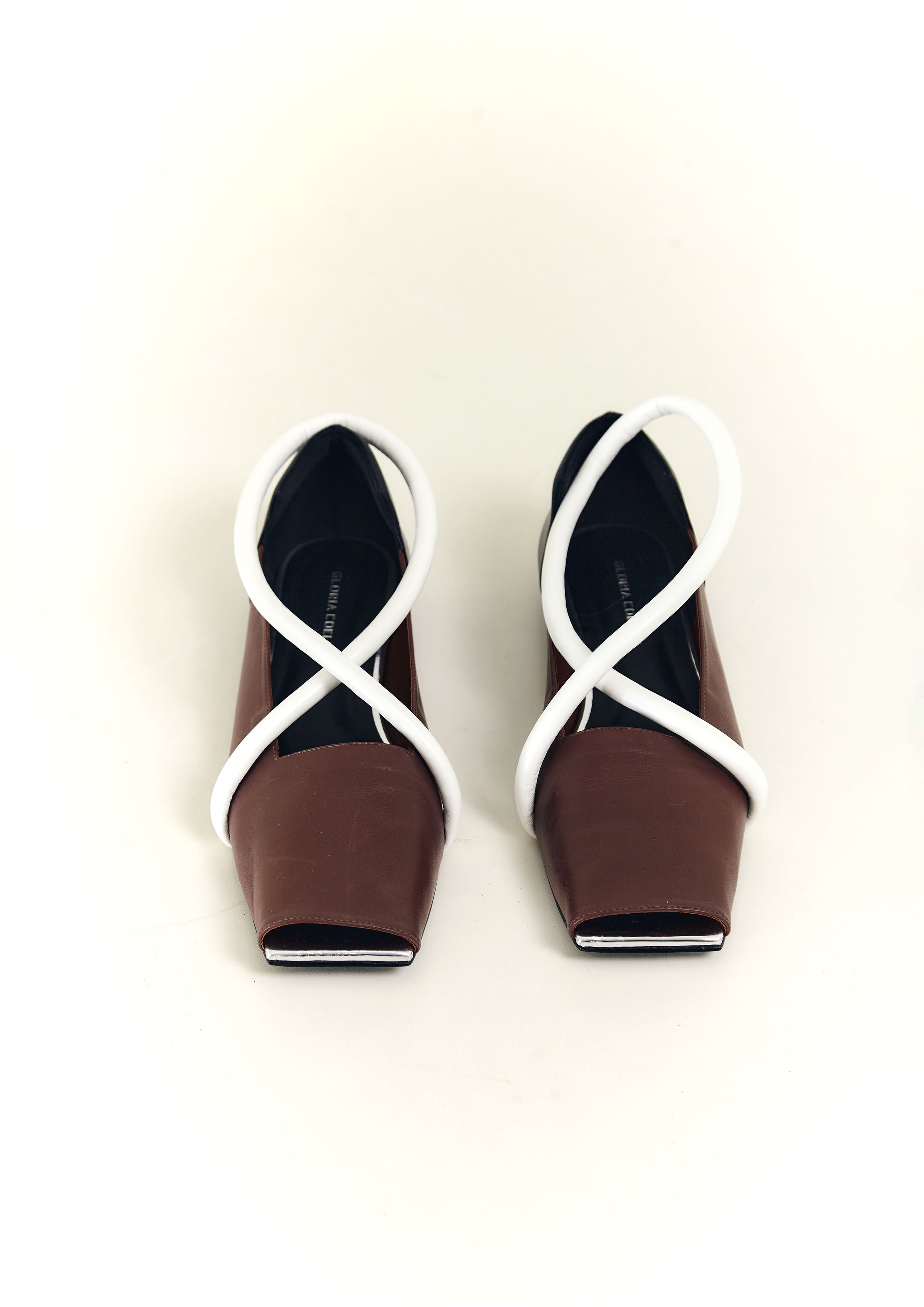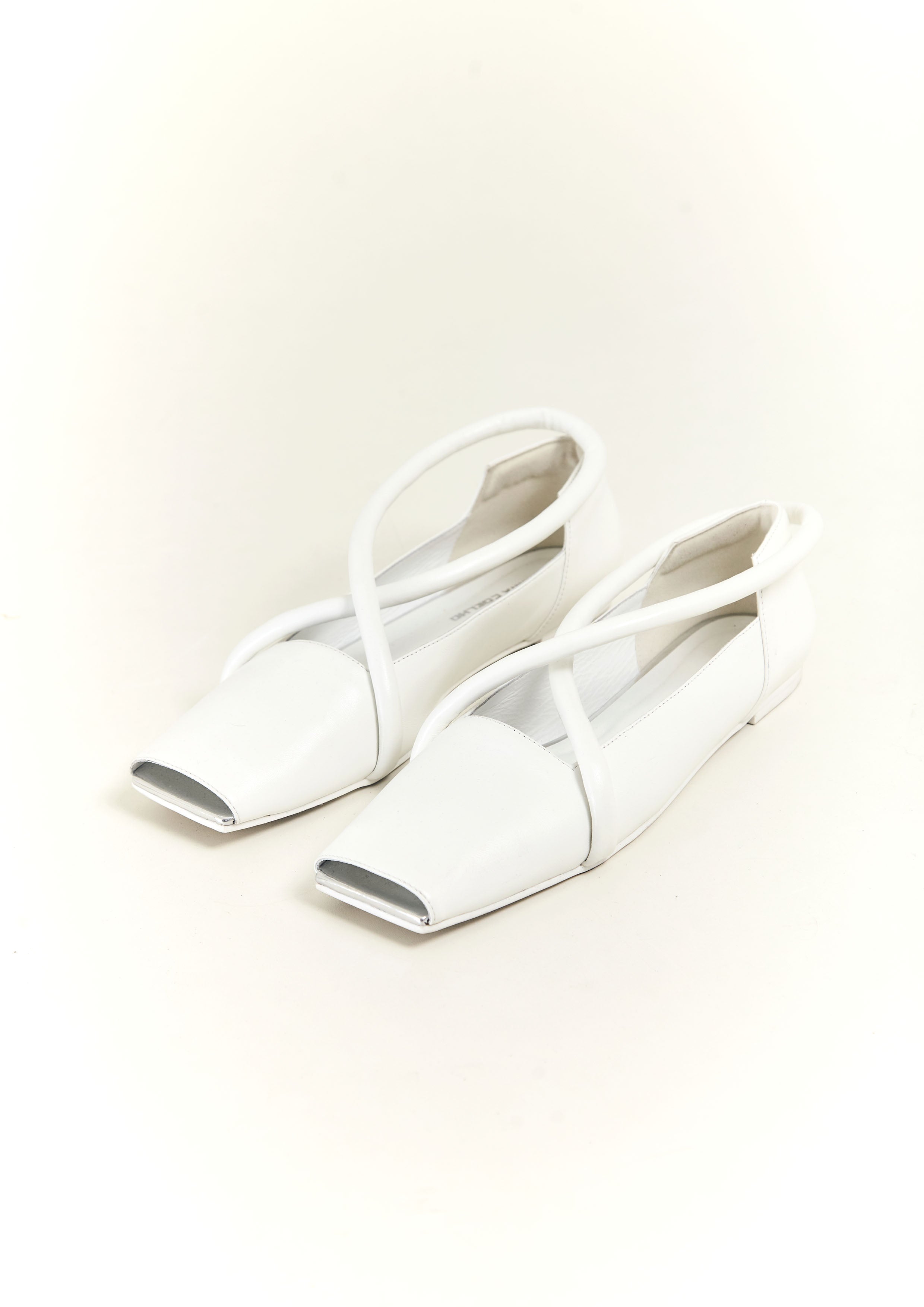 Sapatilha bico quadrado de couro, com tira em X de couro verniz, recorte quadrado e frente aberta.