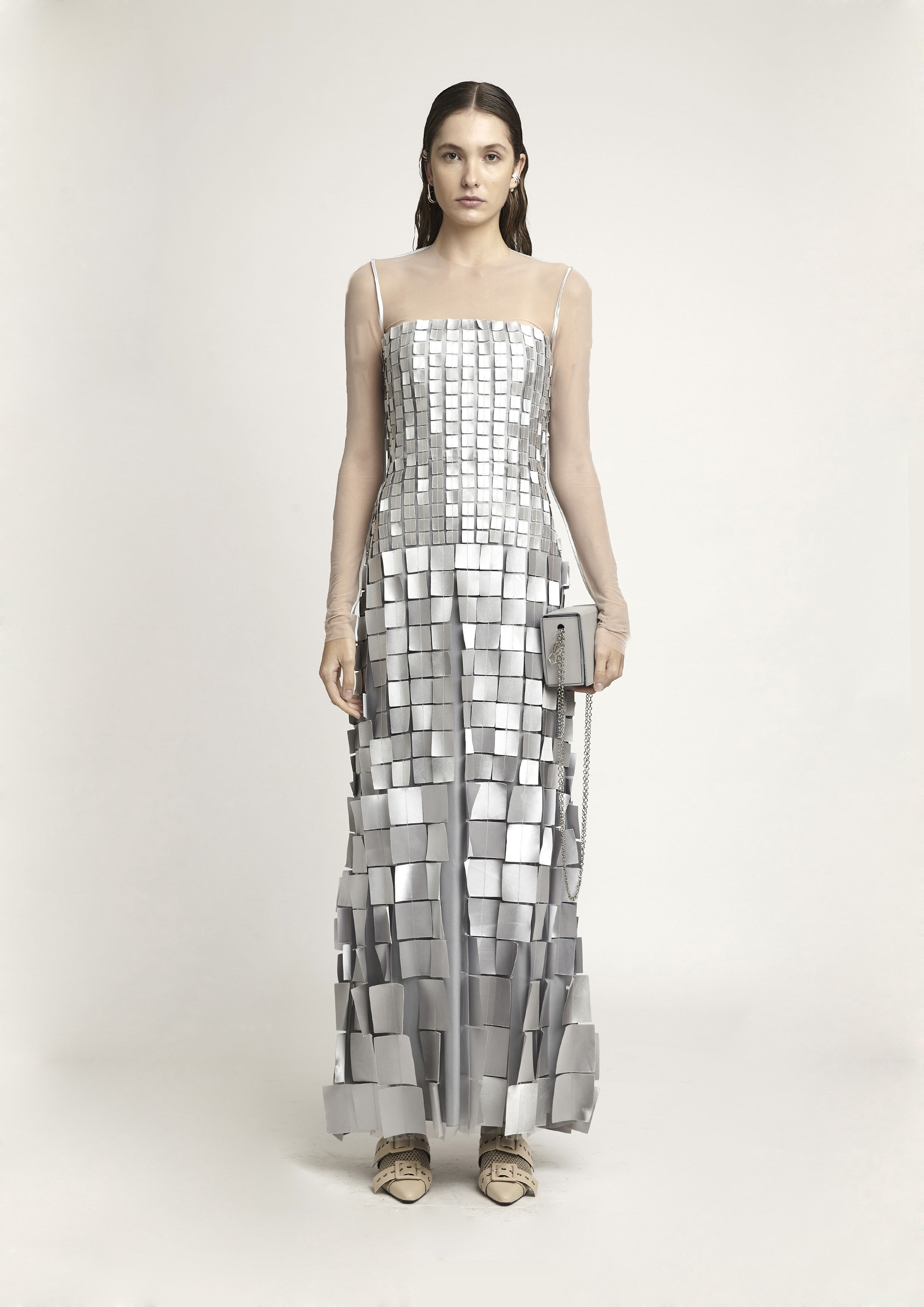 O Vestido com Aplicações em Quadrado possui um modelo tomara que caia, confeccionado em poliamida de alta qualidade que proporciona um caimento perfeito. As aplicações em quadrado de diferentes tamanho adicionam originalidade e sofisticação. Ideal para ocasiões especiais, este vestido destaca sua silhueta de forma elegante, garantindo um visual moderno e elegante.