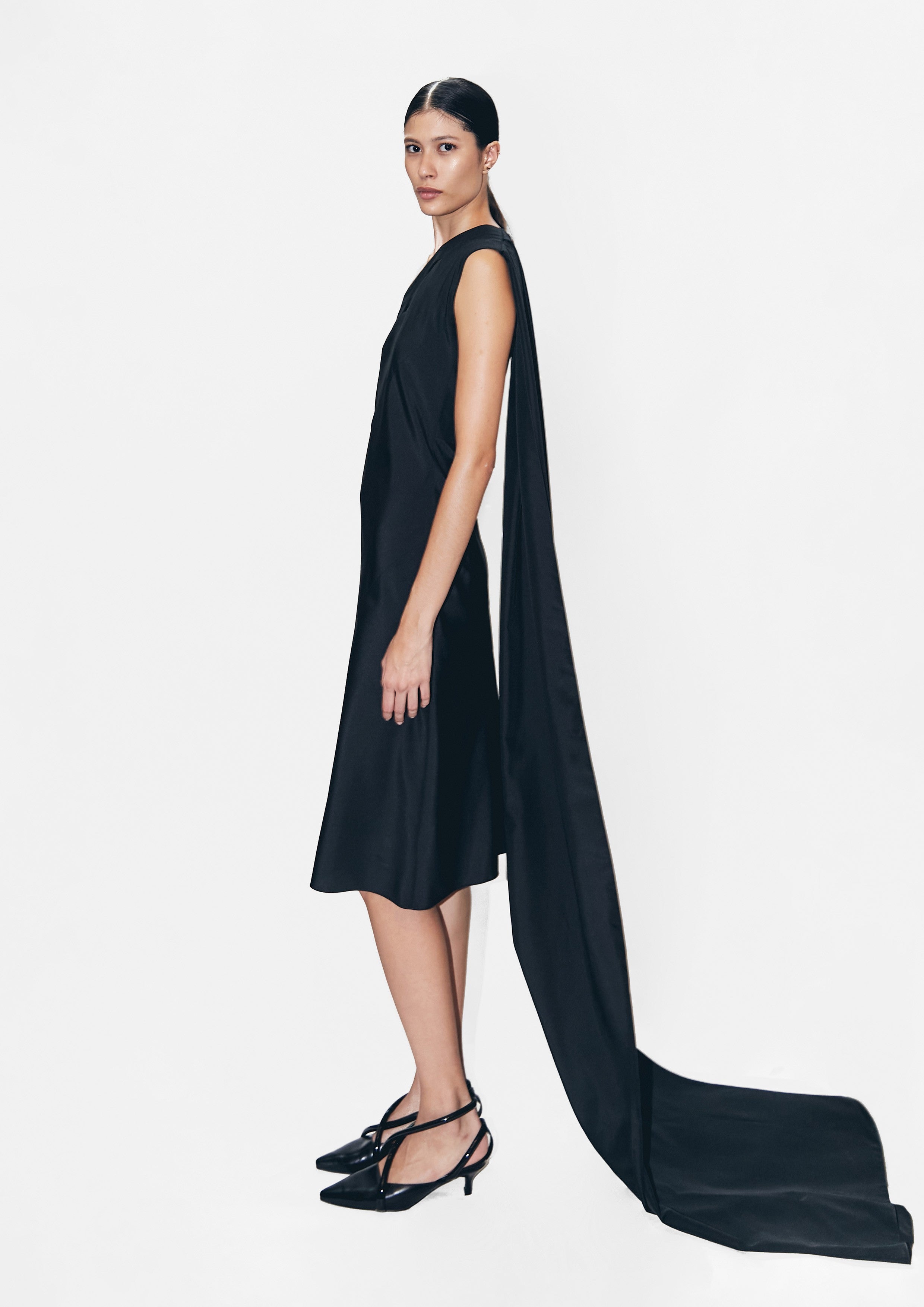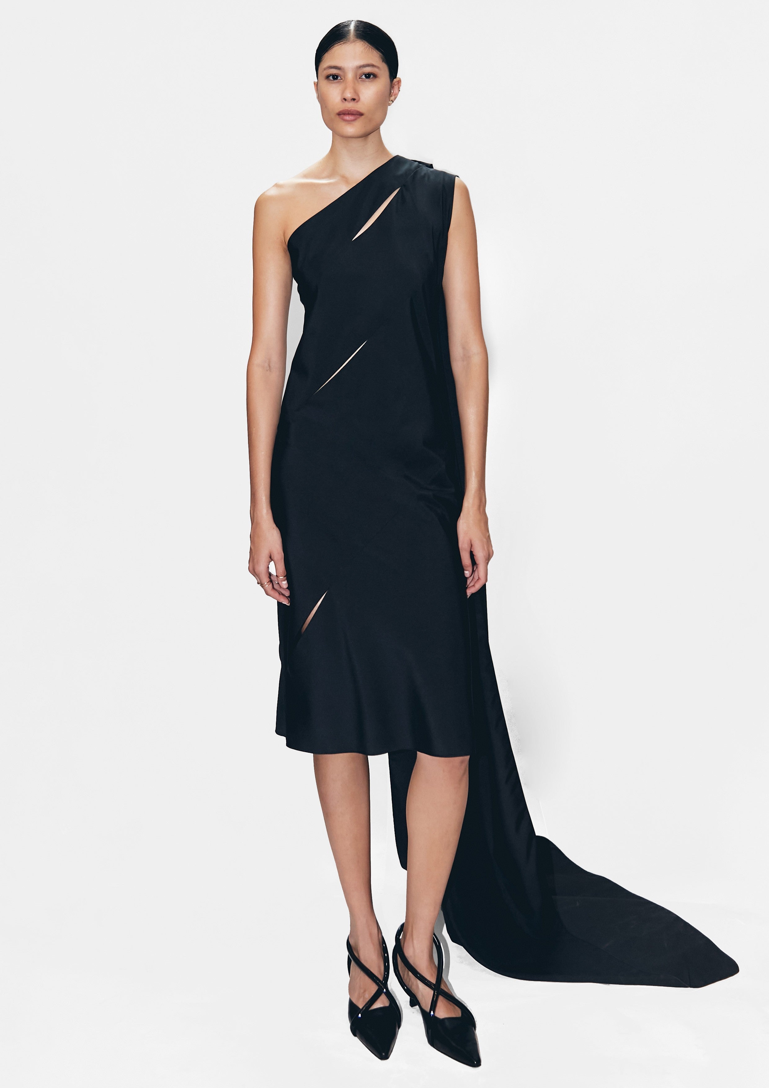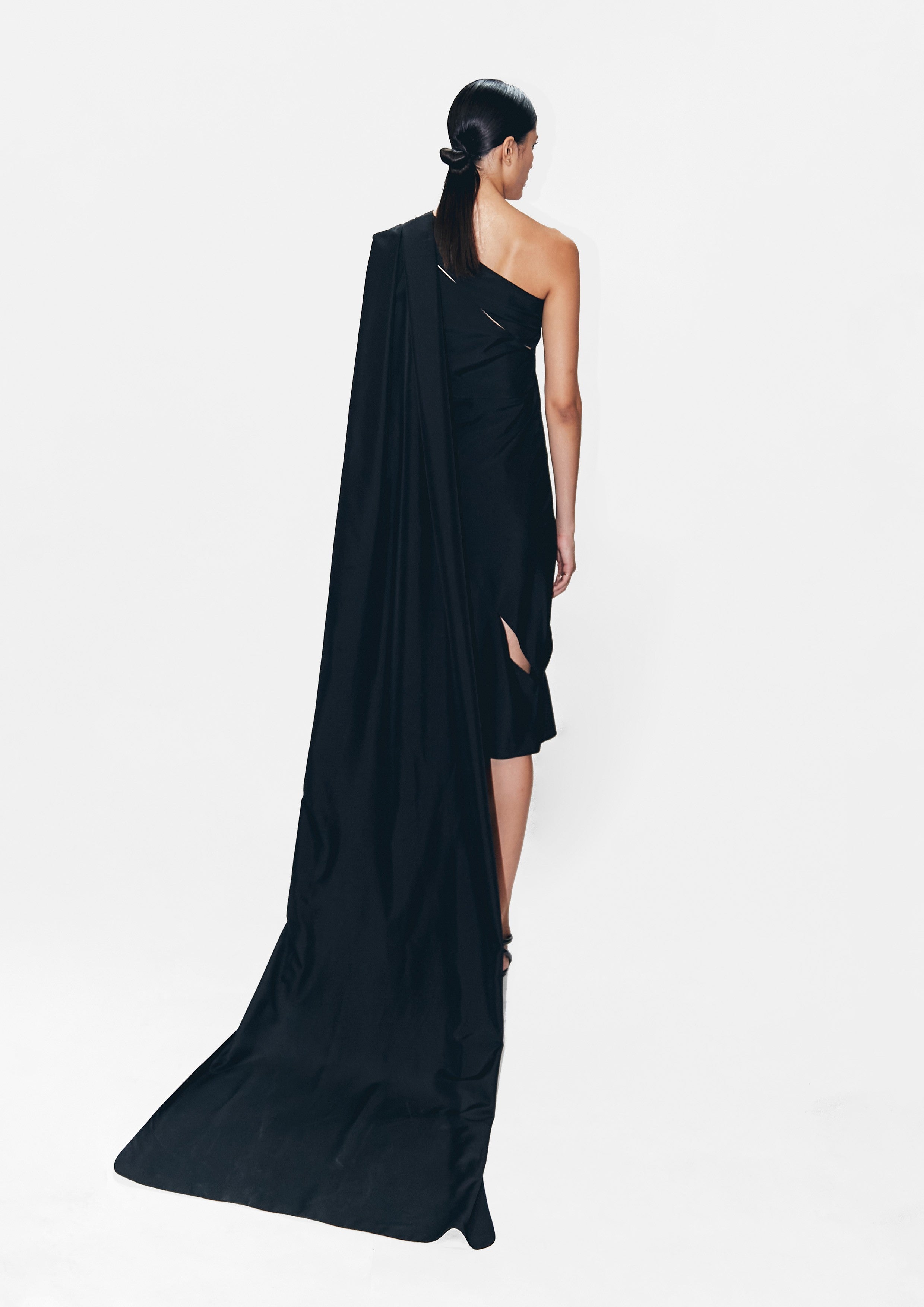 VESTIDO CURTO OMBRO ÚNICO COM CAPA