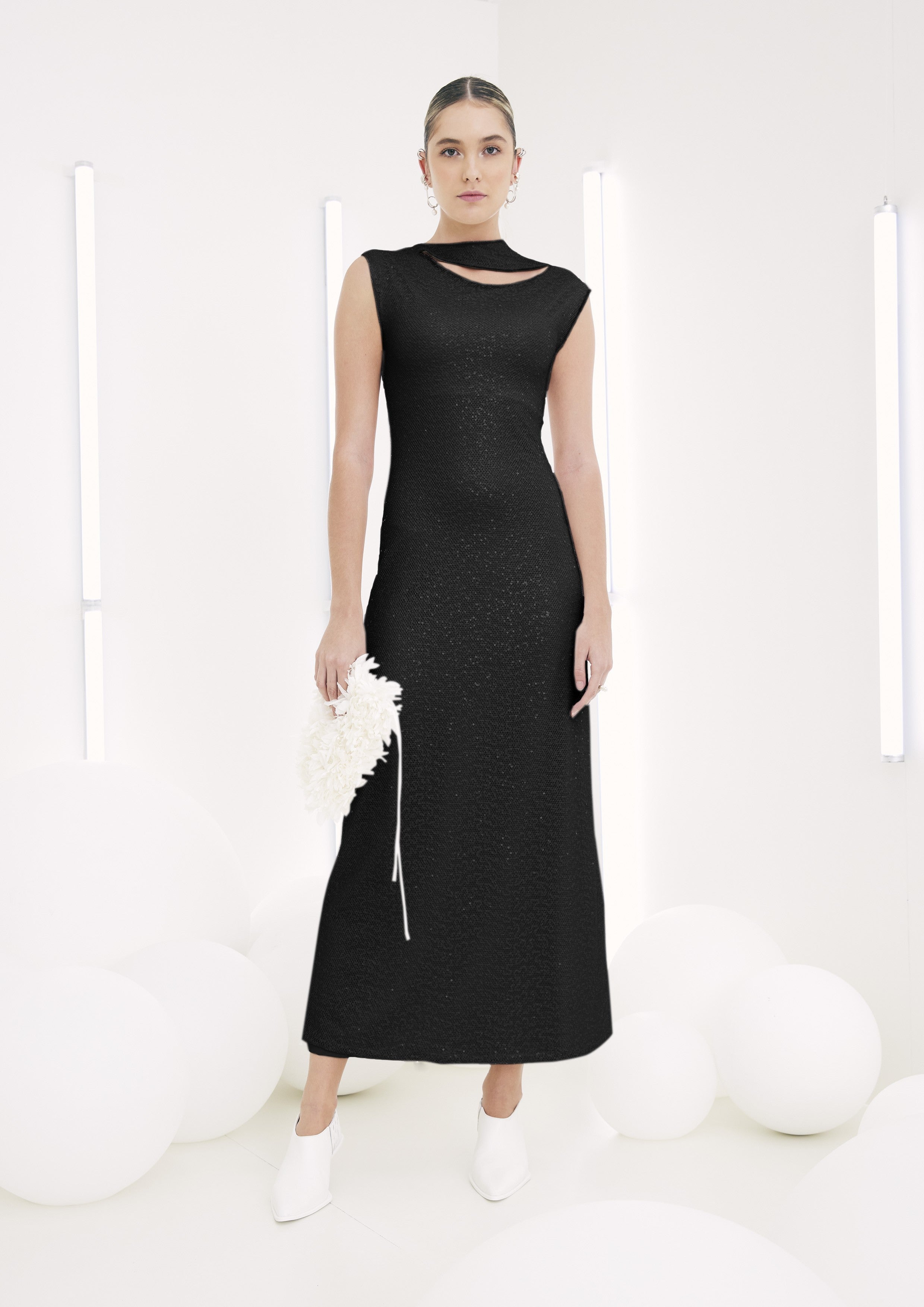 VESTIDO DECOTE ASSIMÉTRICO DE PAETÊ