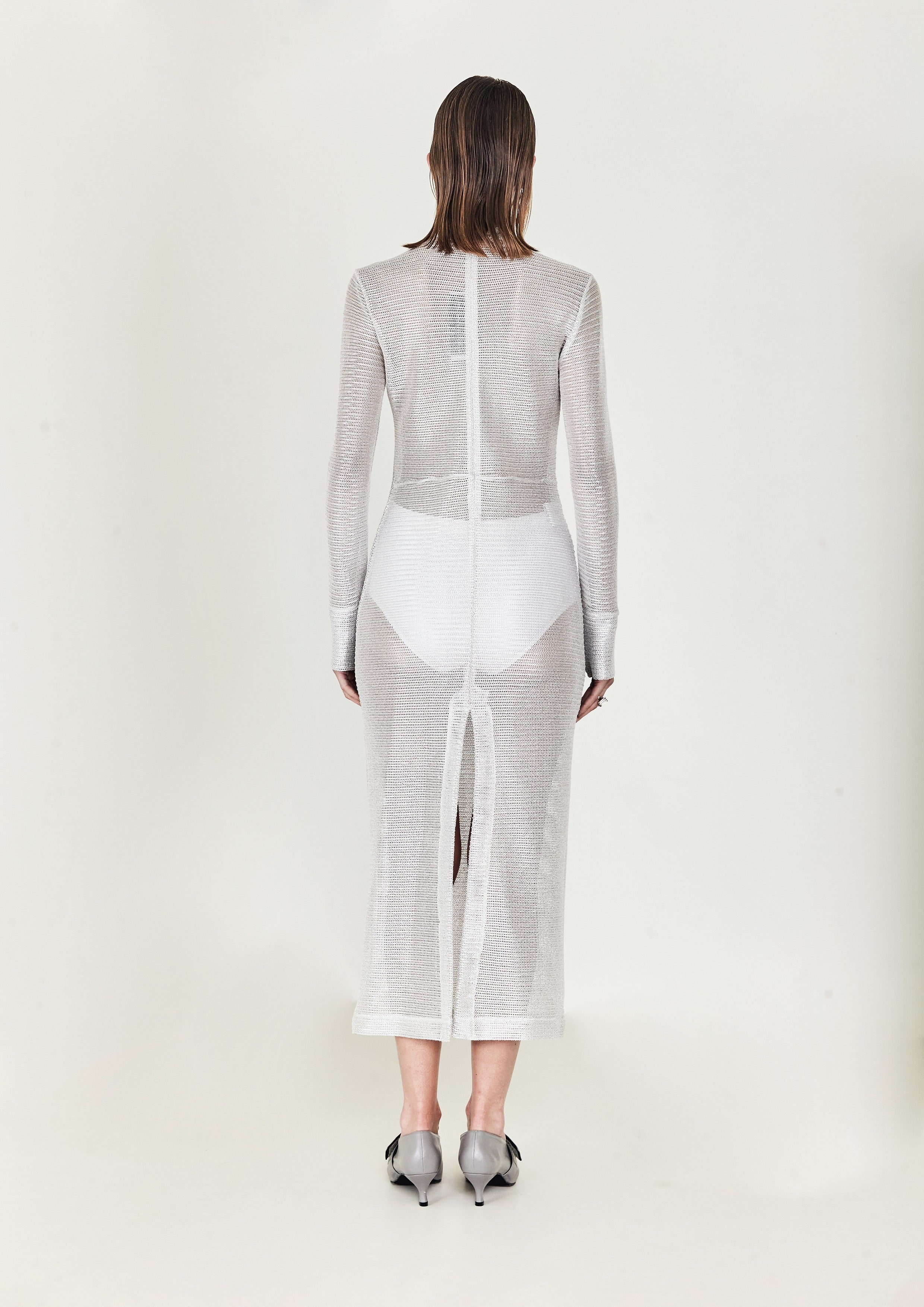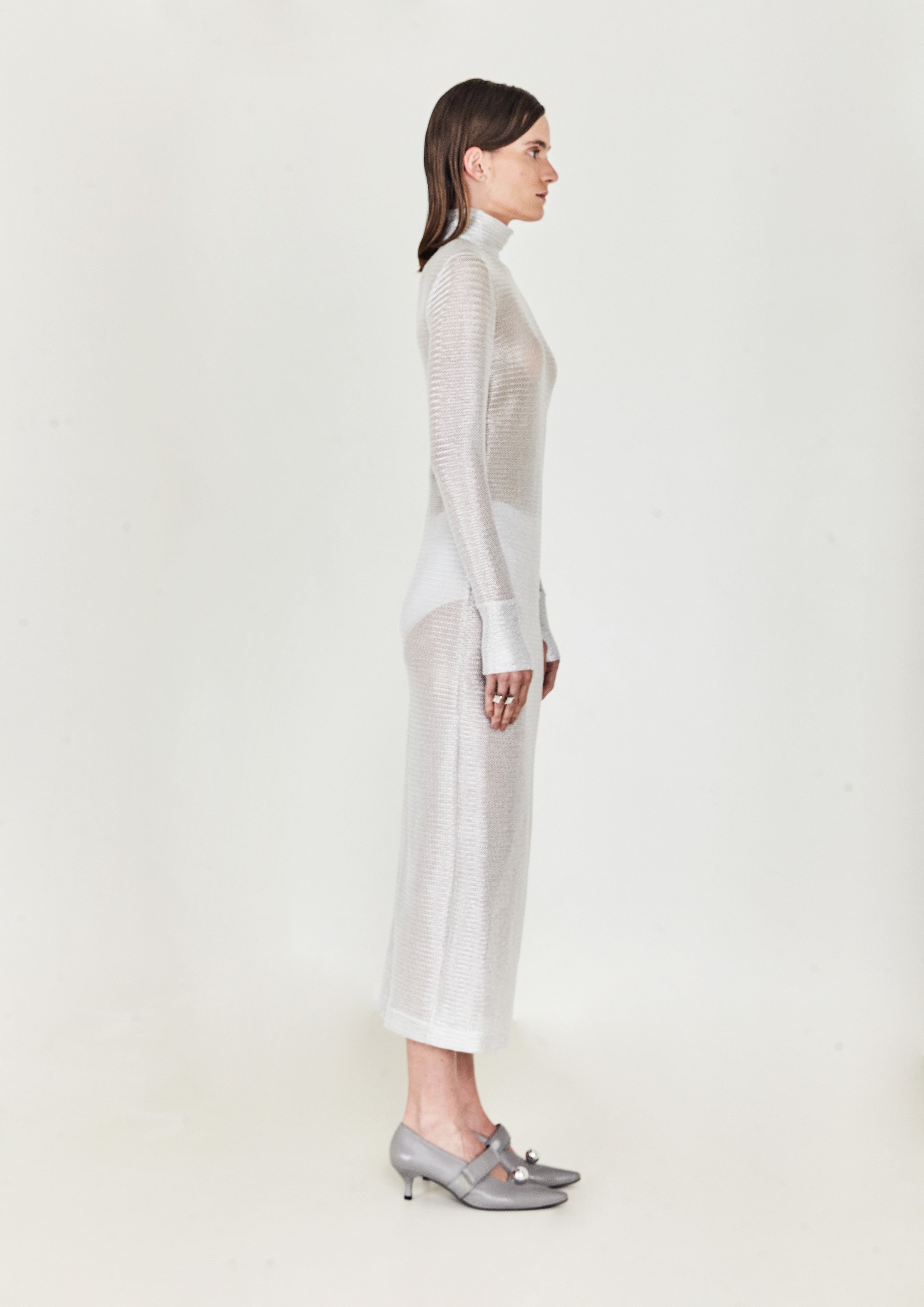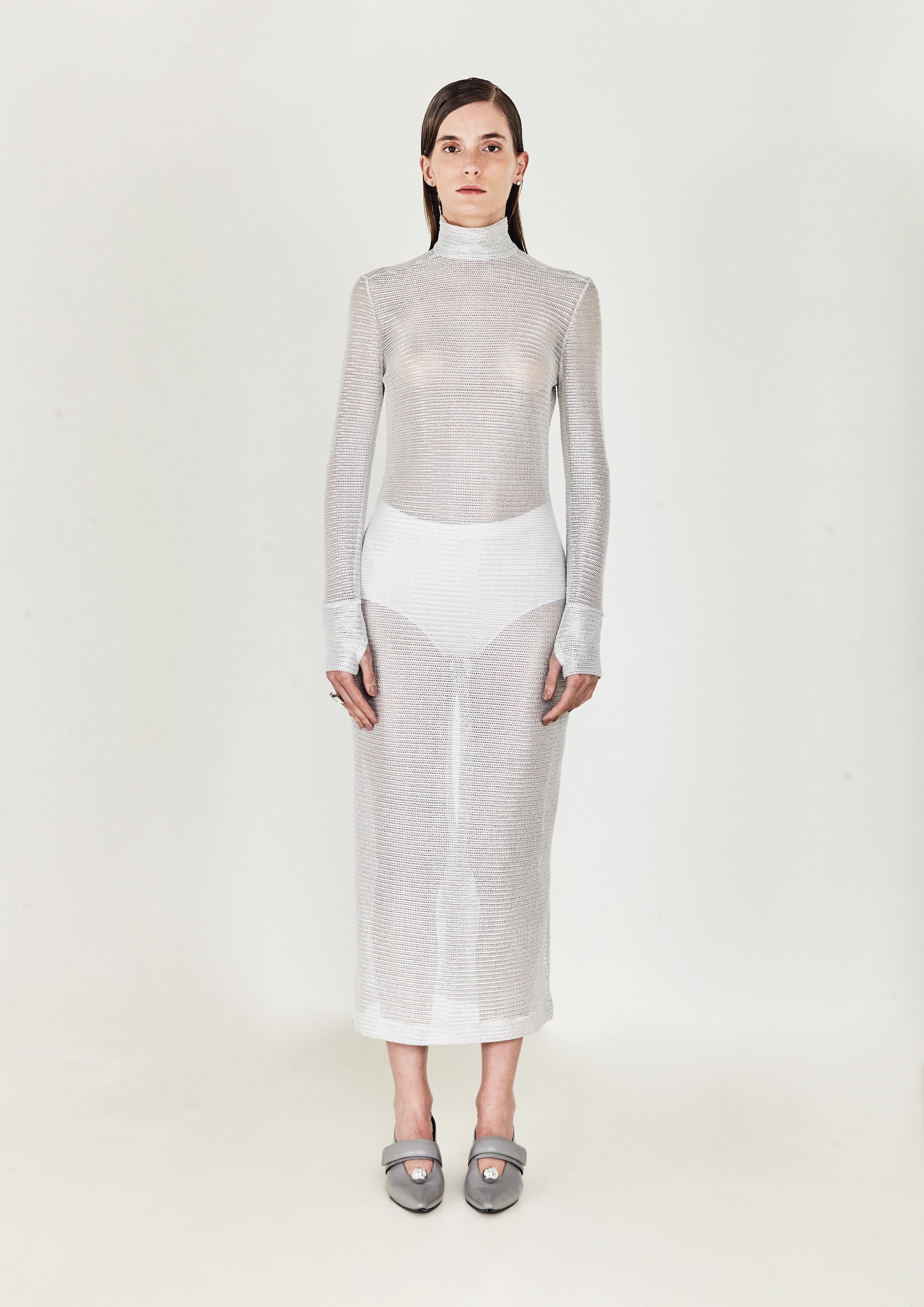 VESTIDO GOLA ROLÊ DE TELA METÁLICA