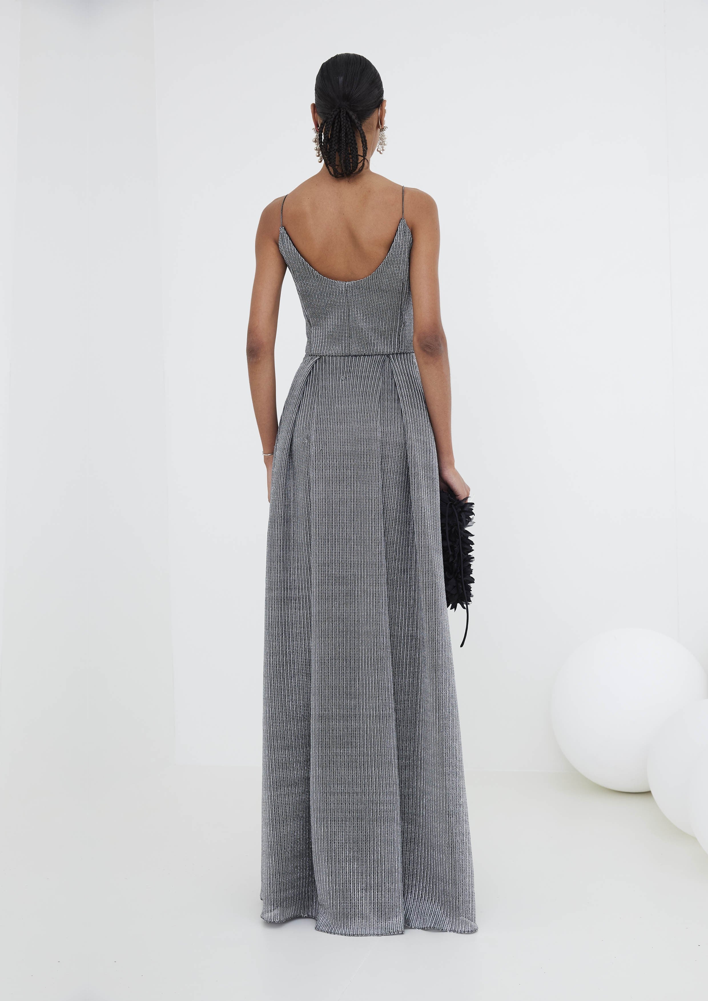 Com um corselet de tela que adiciona um toque de sofisticação, esse vestido realça a silhueta e destaca a feminilidade. Suas alças finas trazem delicadeza ao visual. Ideal para ocasiões especiais, festas e eventos formais.