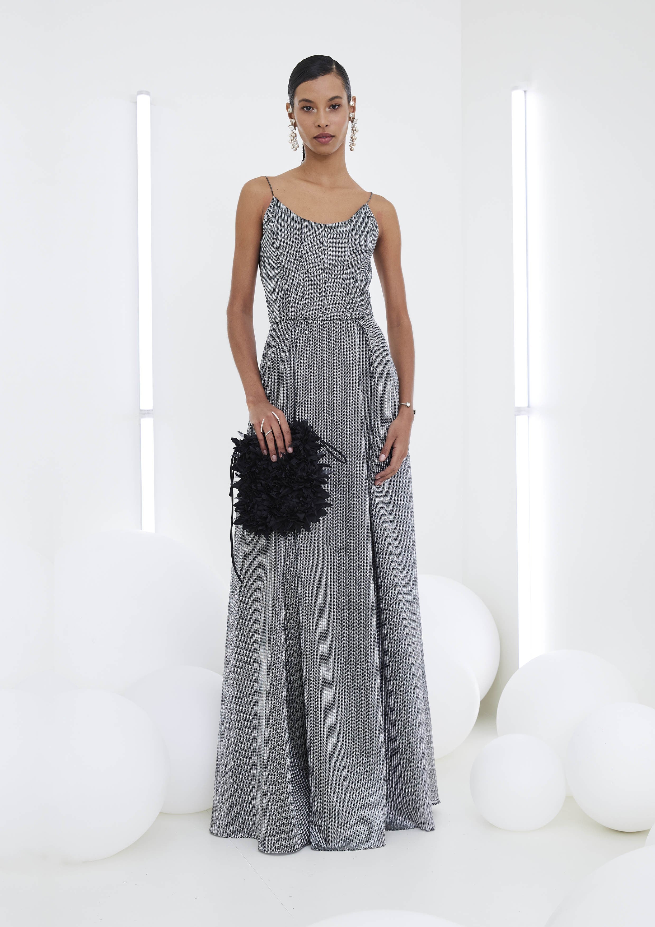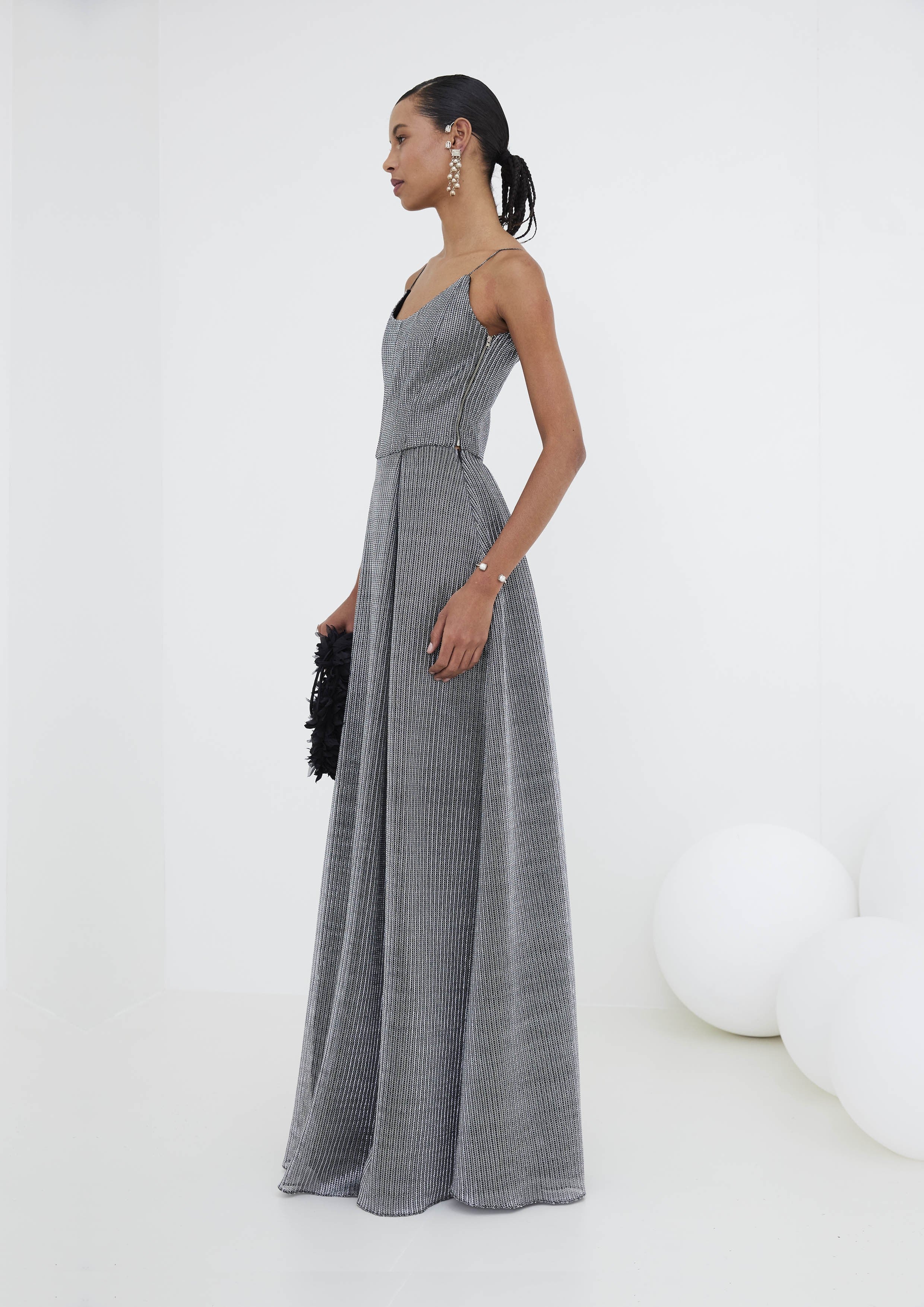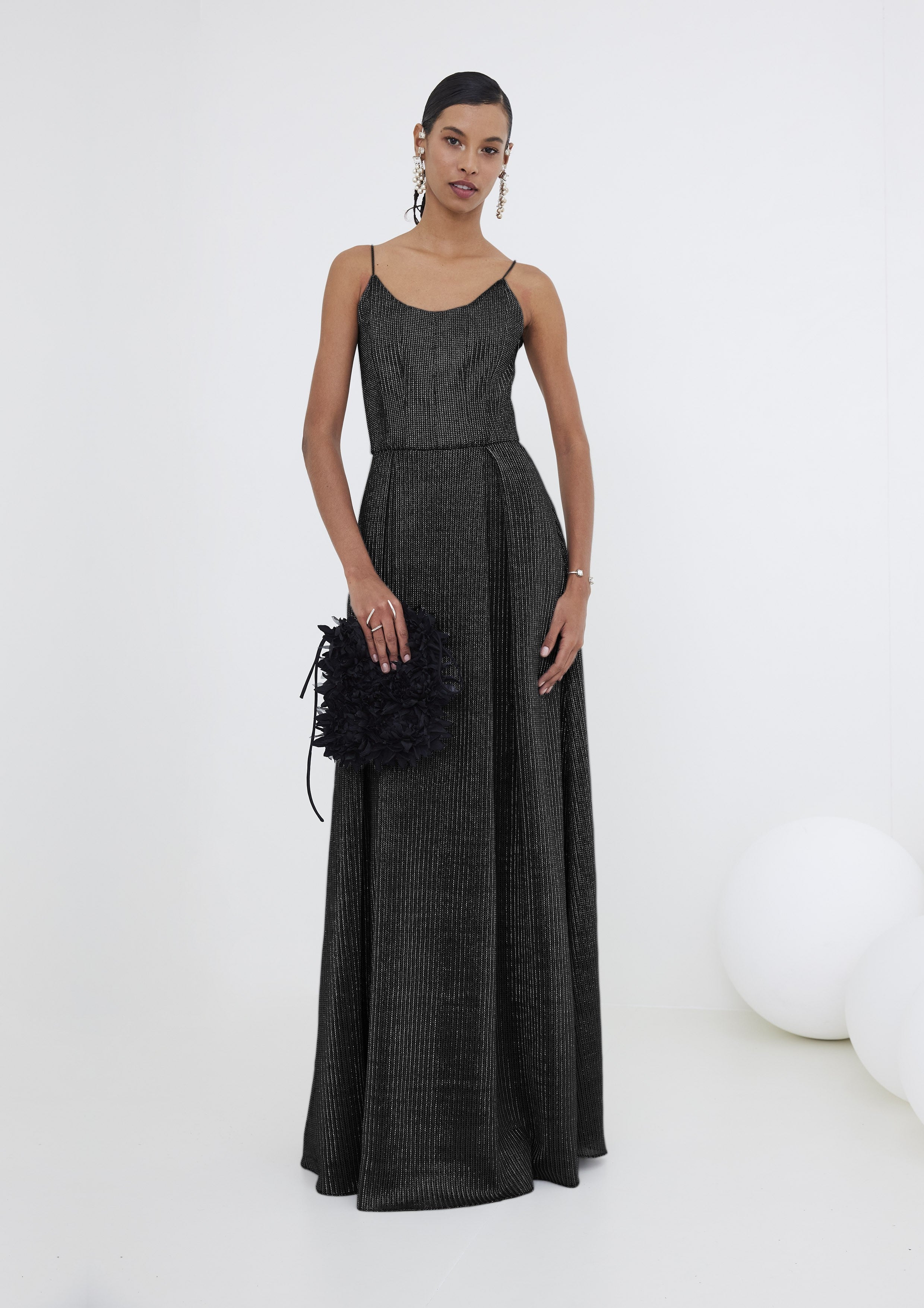 O elegante vestido longo com corselet de tela, confeccionado em algodão e poliéster. O modelo encantador apresenta uma cintura marcada seguindo com um caimento fluido.
